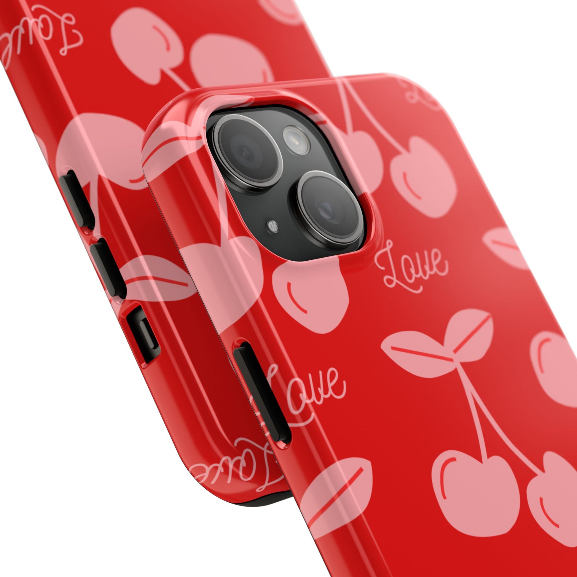 Introducing our vibrant Tough Phone Cases, designed to celebrate your unique style while keeping your phone safe and sound. With a playful cherry pattern and the word 'Love', this case brings a cheerful vibe to your daily life. Perfect for anyone who embraces fun aesthetics and wants to showcase personality through their phone accessories. Ideal for gifting during holidays such as Valentine’s Day, anniversaries, or birthdays, this case suits those who appreciate a blend of functionality and flair. It’s a delightful way to express love and vibrancy in everyday objects!