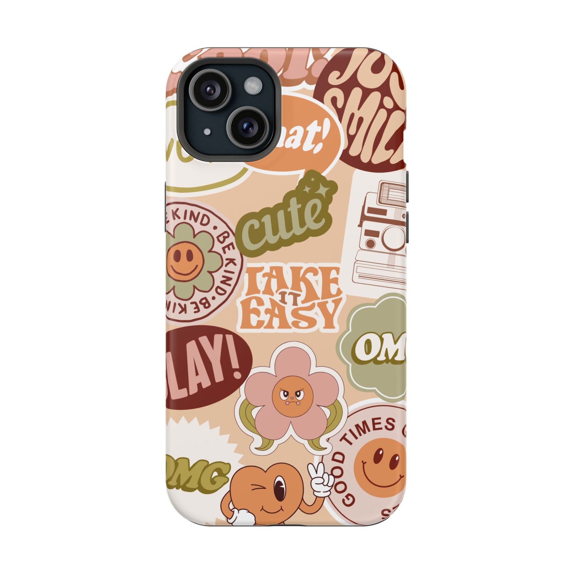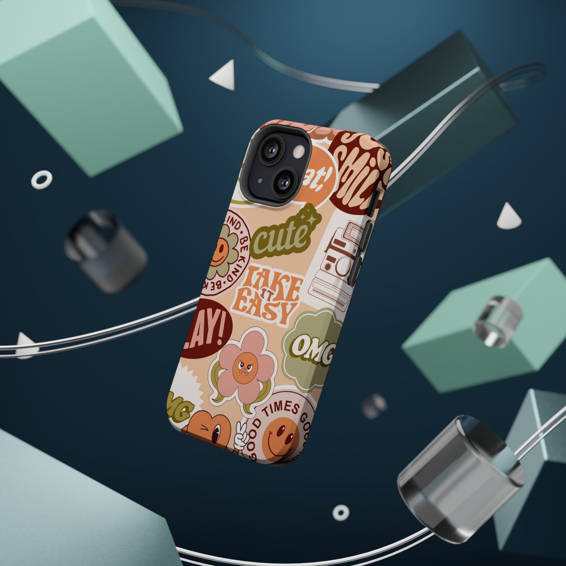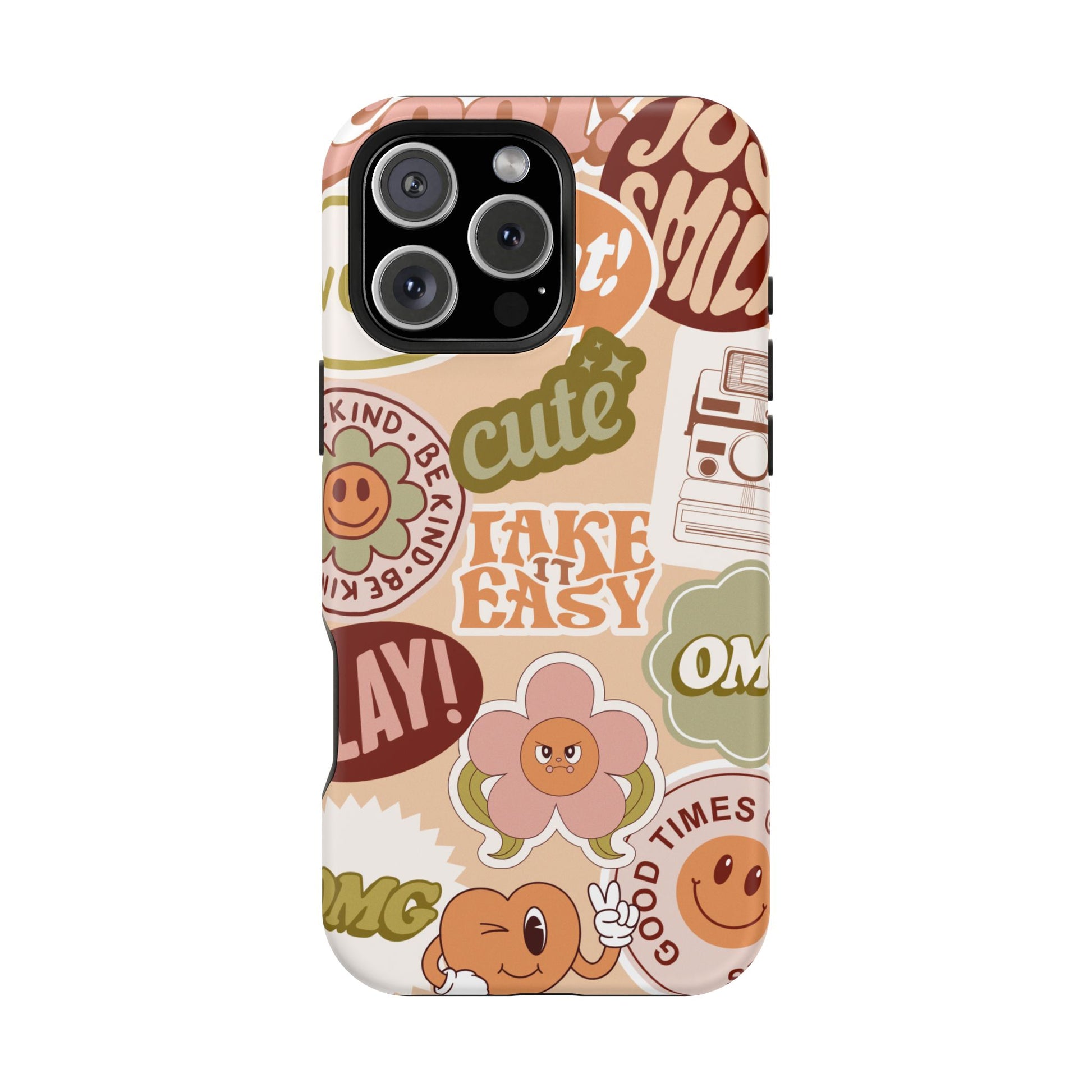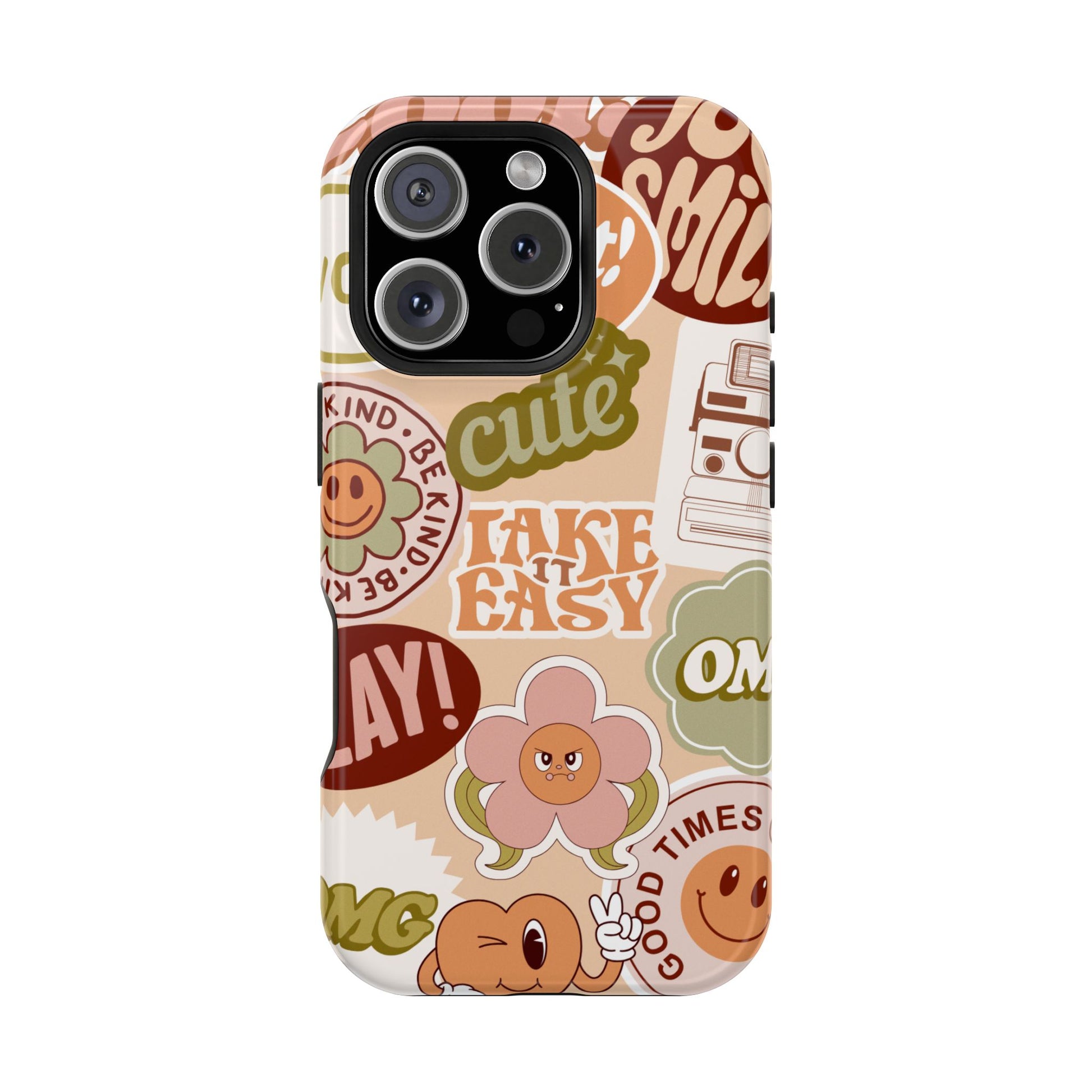 Cute Retro, Positive Affirmation Sticker Phone Case, Funky Phone Cover, Vibrant Design, Ideal Gift for Teens