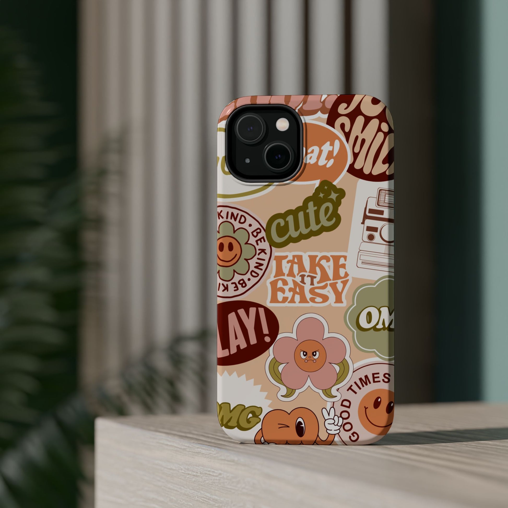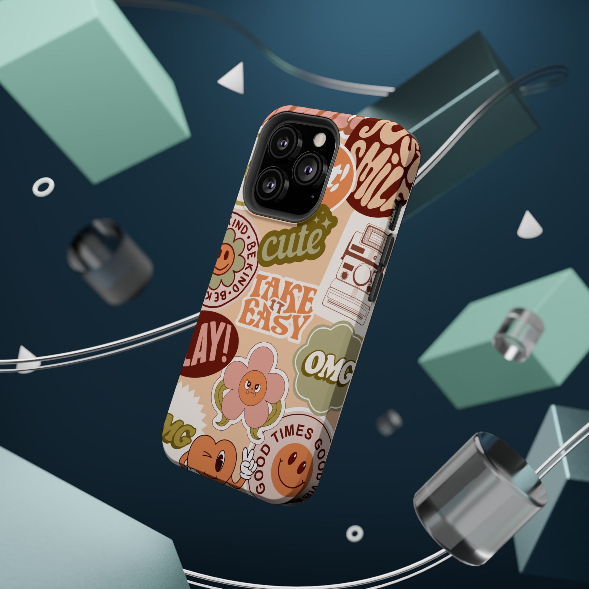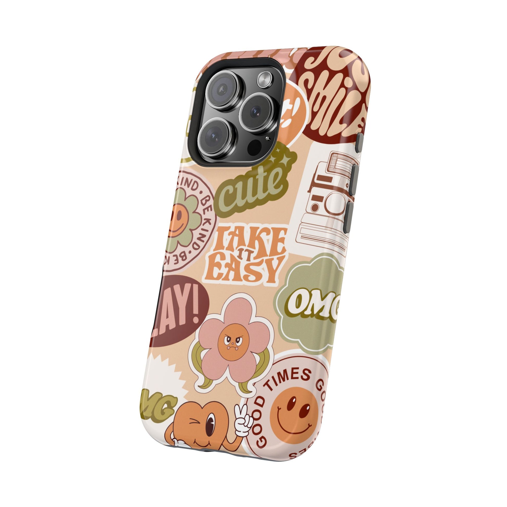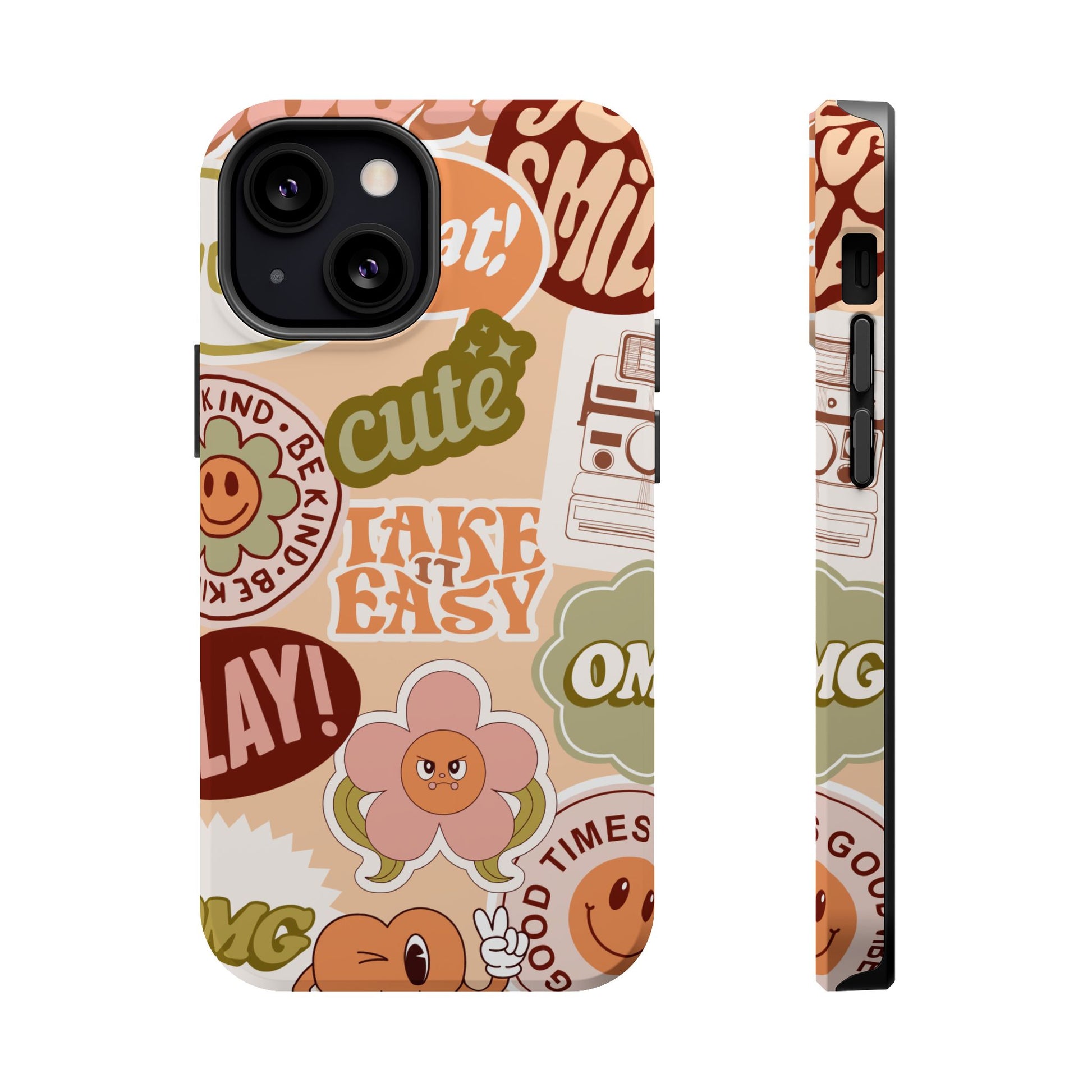 Cute Retro, Positive Affirmation Sticker Phone Case, Funky Phone Cover, Vibrant Design, Ideal Gift for Teens