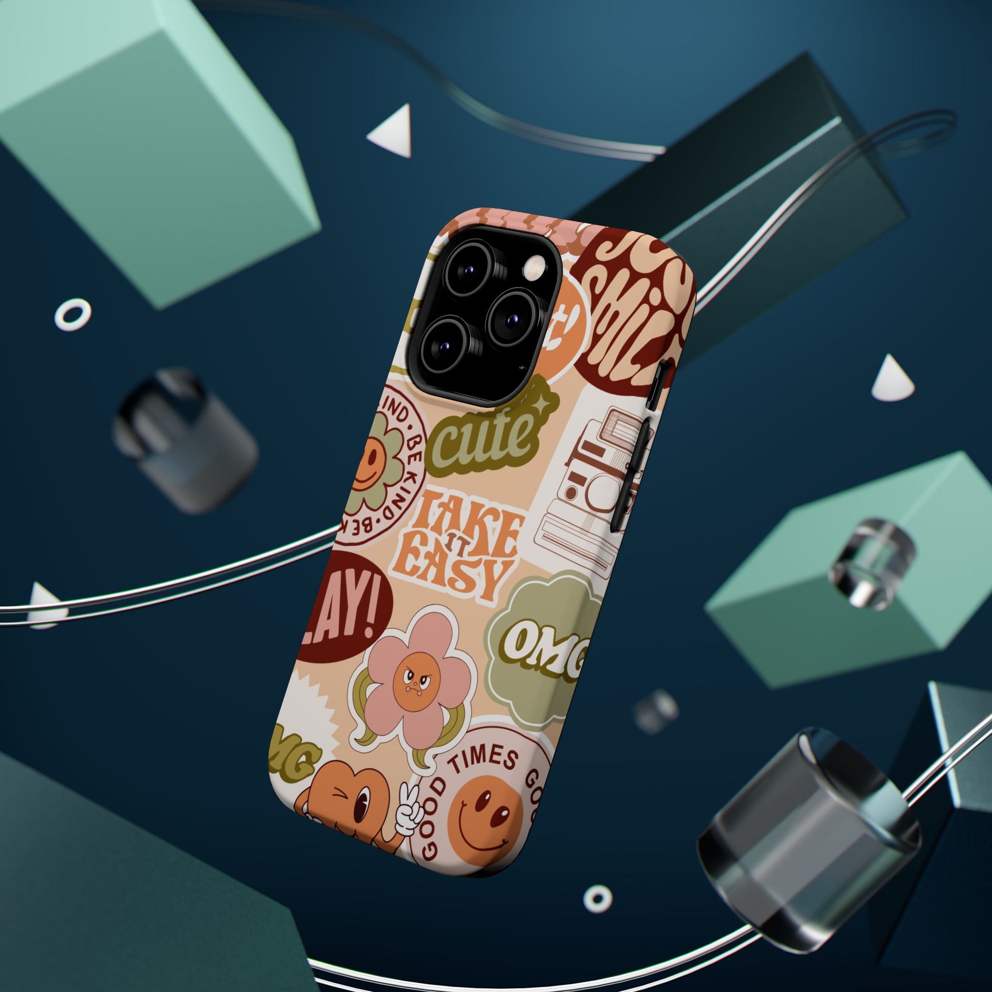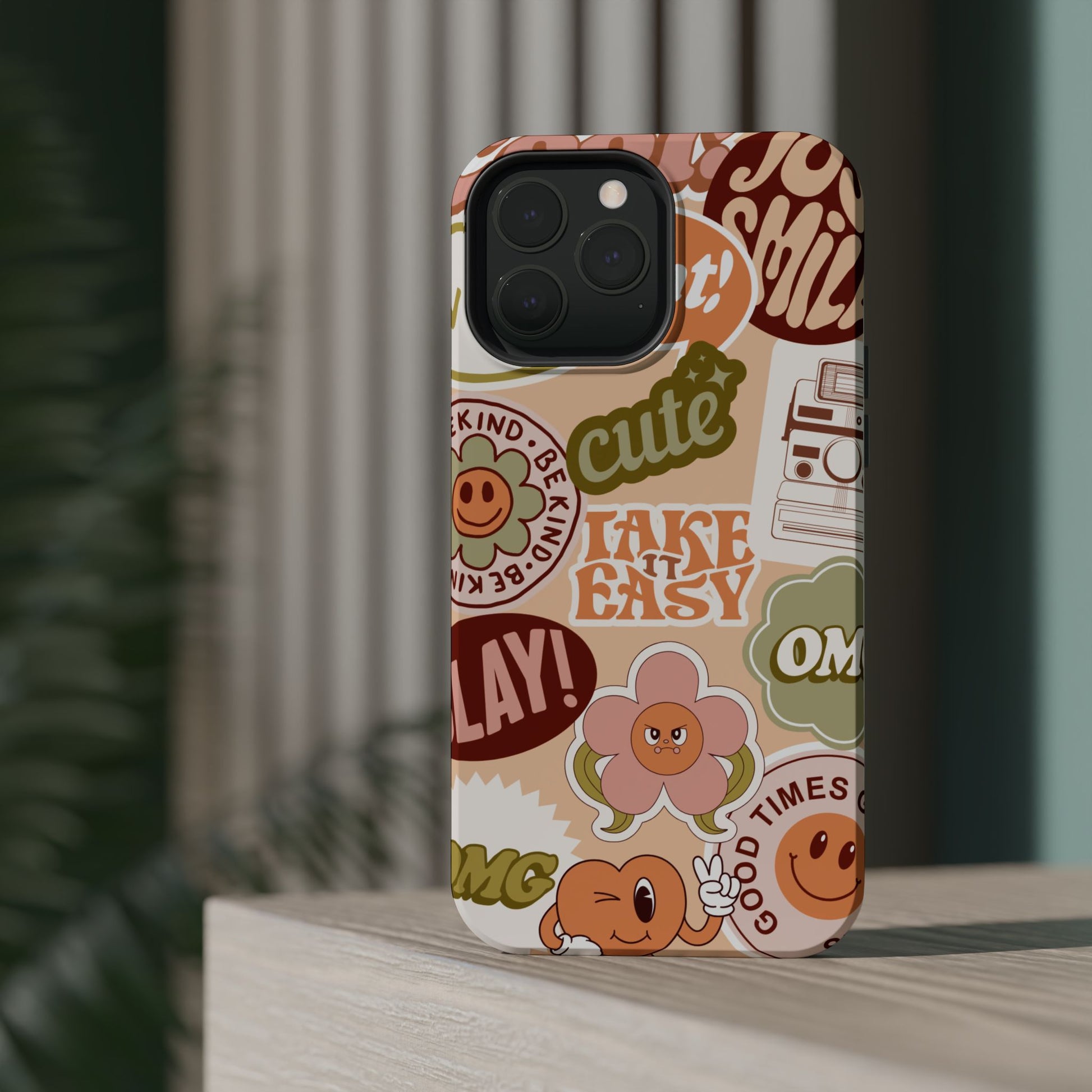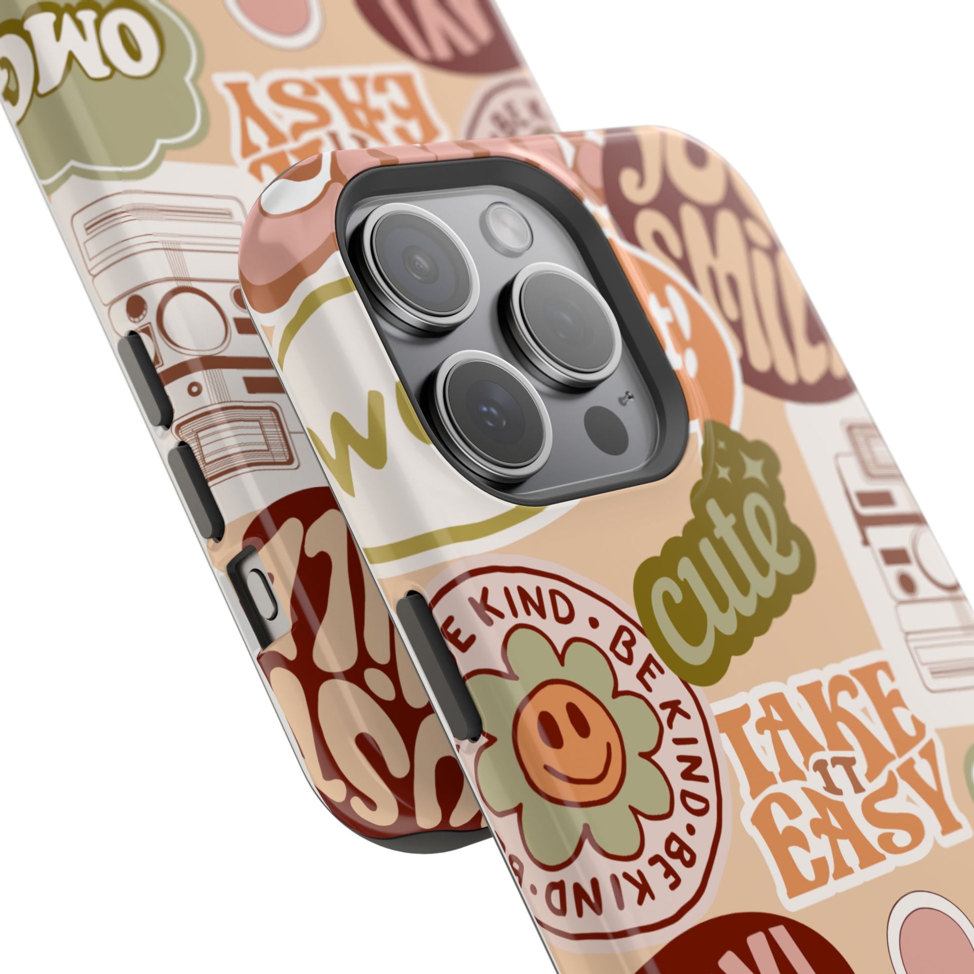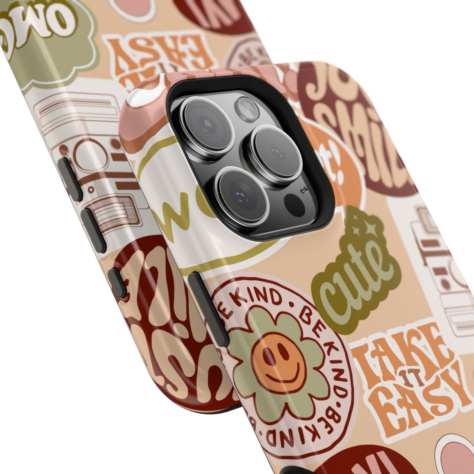 Cute Retro, Positive Affirmation Sticker Phone Case, Funky Phone Cover, Vibrant Design, Ideal Gift for Teens