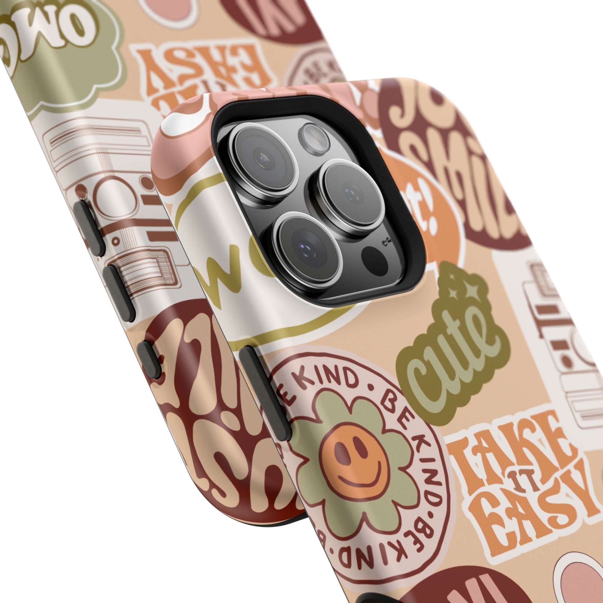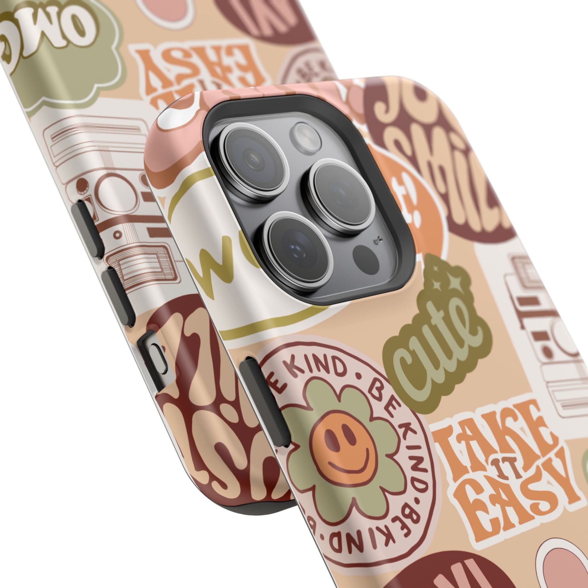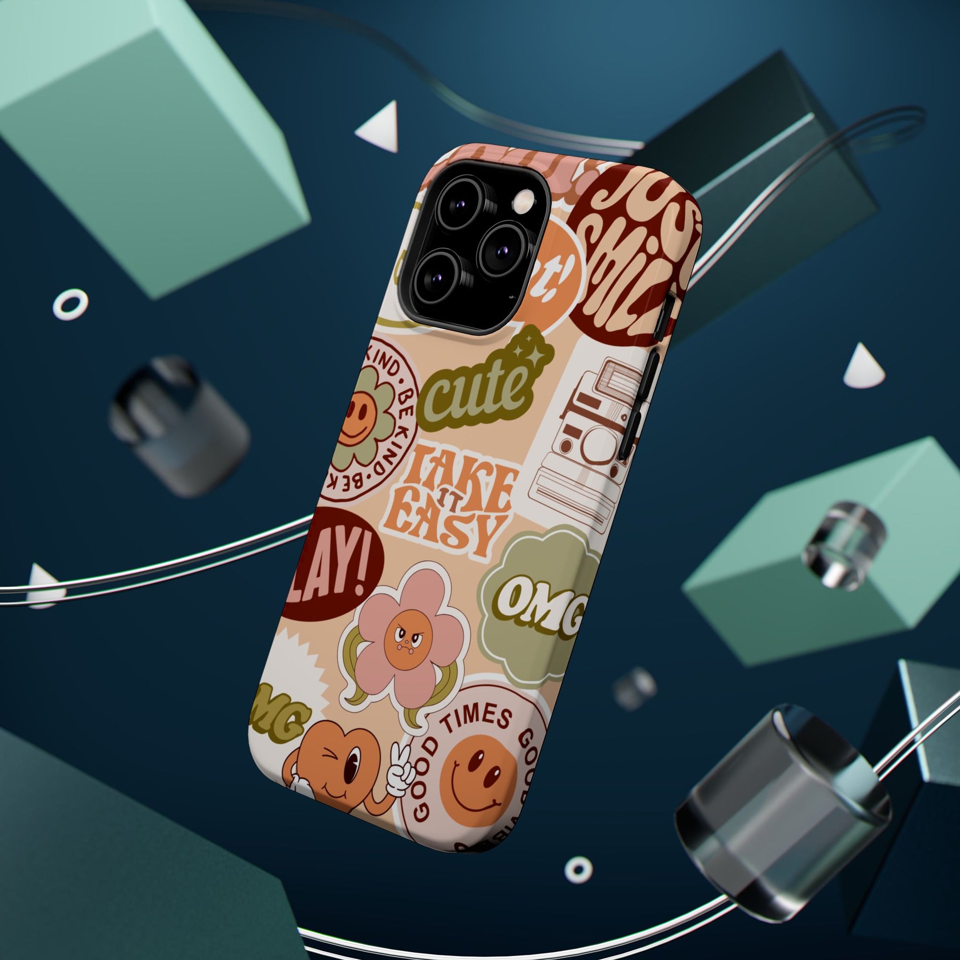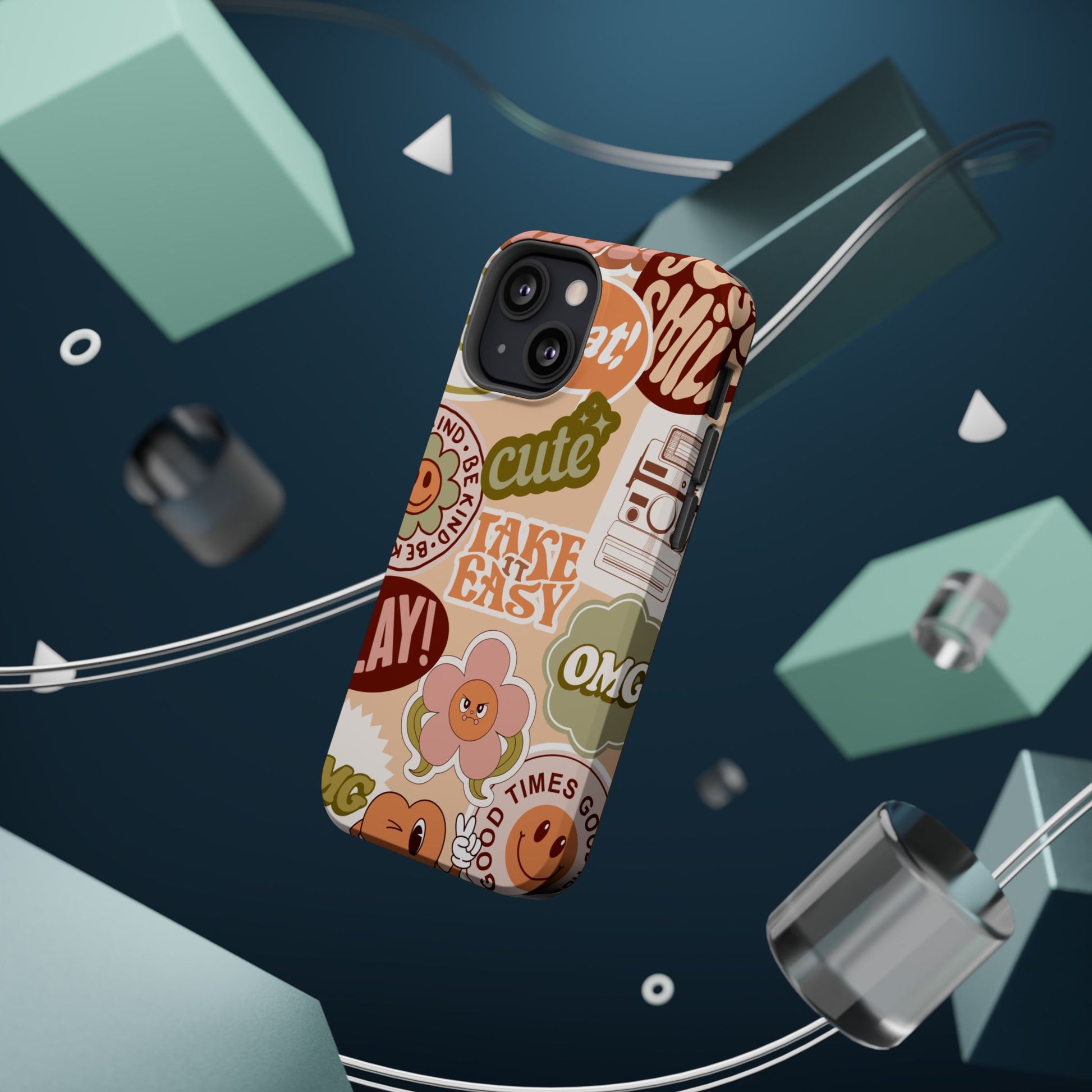 Cute Retro, Positive Affirmation Sticker Phone Case, Funky Phone Cover, Vibrant Design, Ideal Gift for Teens