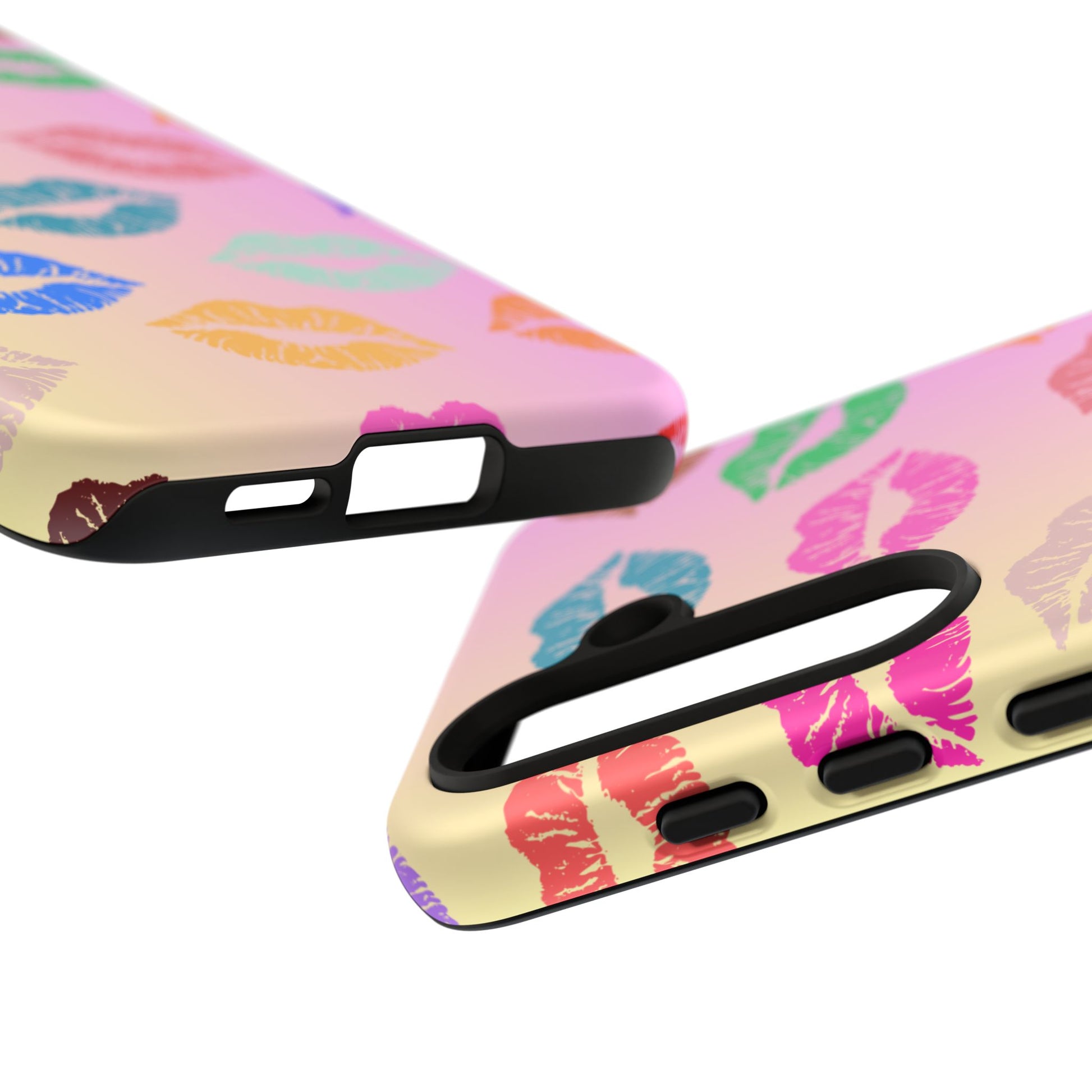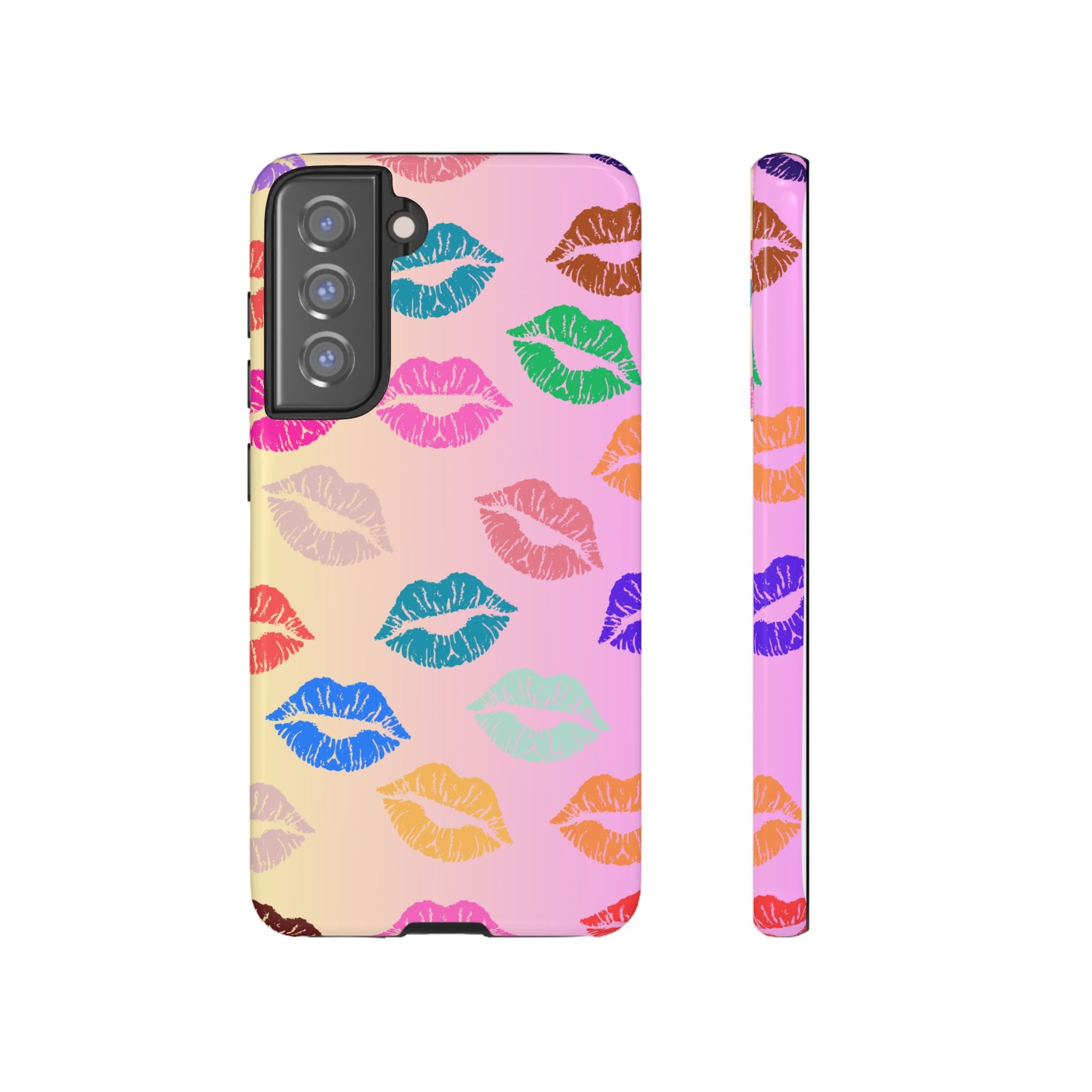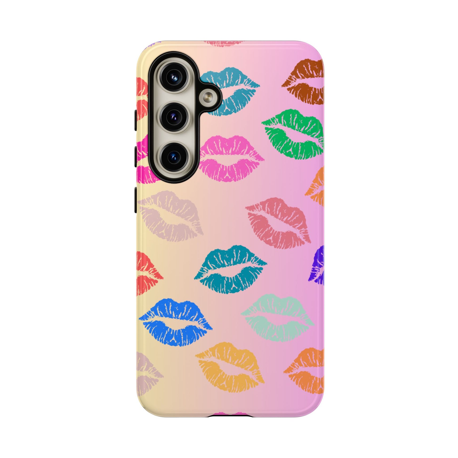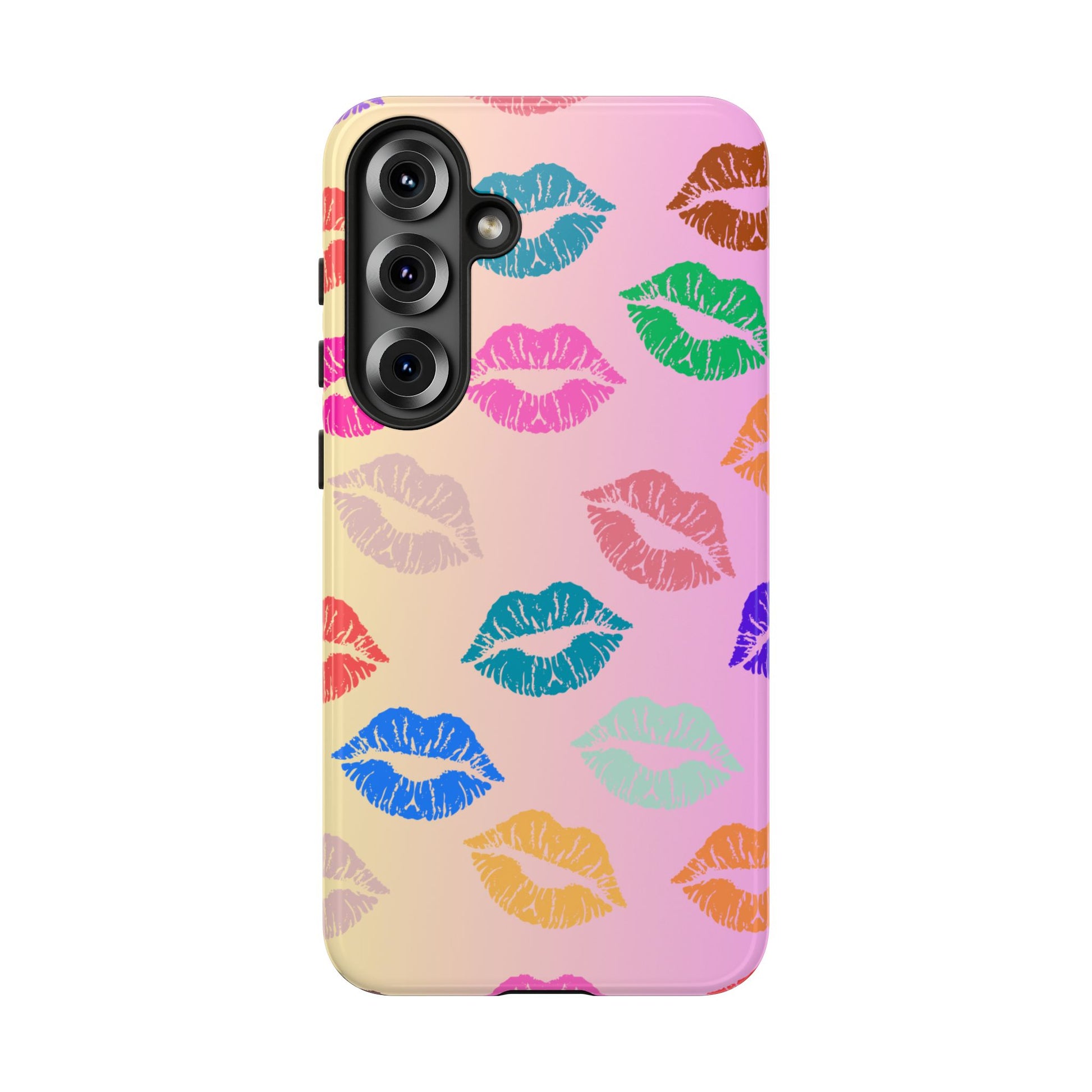 Introducing this eye-catching Tough Case, adorned with vibrant and playful kiss prints in a variety of colors. Perfectly crafted to encapsulate your phone with style and flair, this case brings a fun and cheerful vibe to your everyday life. Whether you're at a party, out with friends, or simply want to spice up your daily routine, this Tough Case is a delightful accessory that speaks to your personality. Ideal for adults who love to express their unique style, it's also a fantastic gift idea for celebrations like birthdays, anniversaries, or Valentine's Day. This case combines protection with personality, ensuring your phone remains safe while standing out in a crowd.