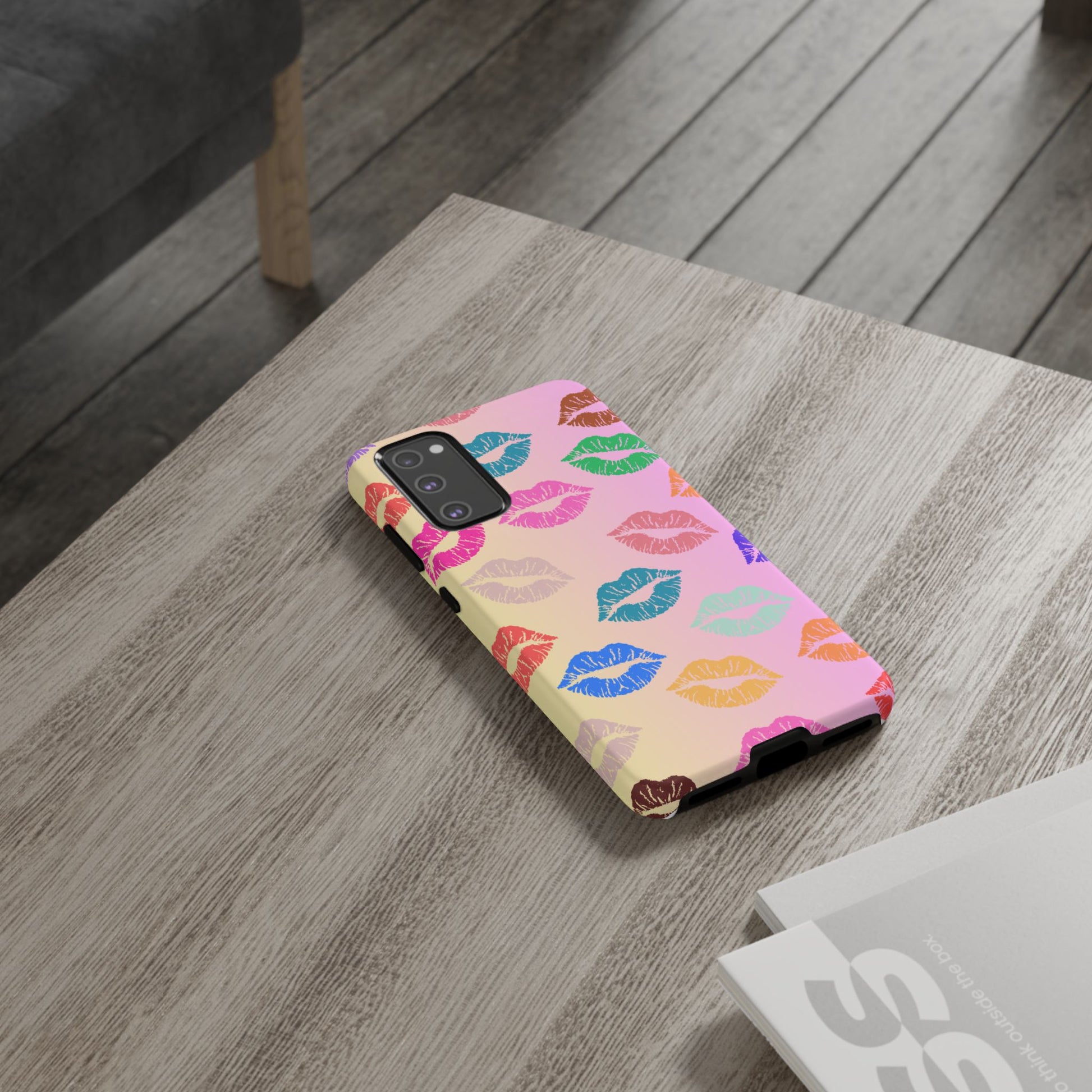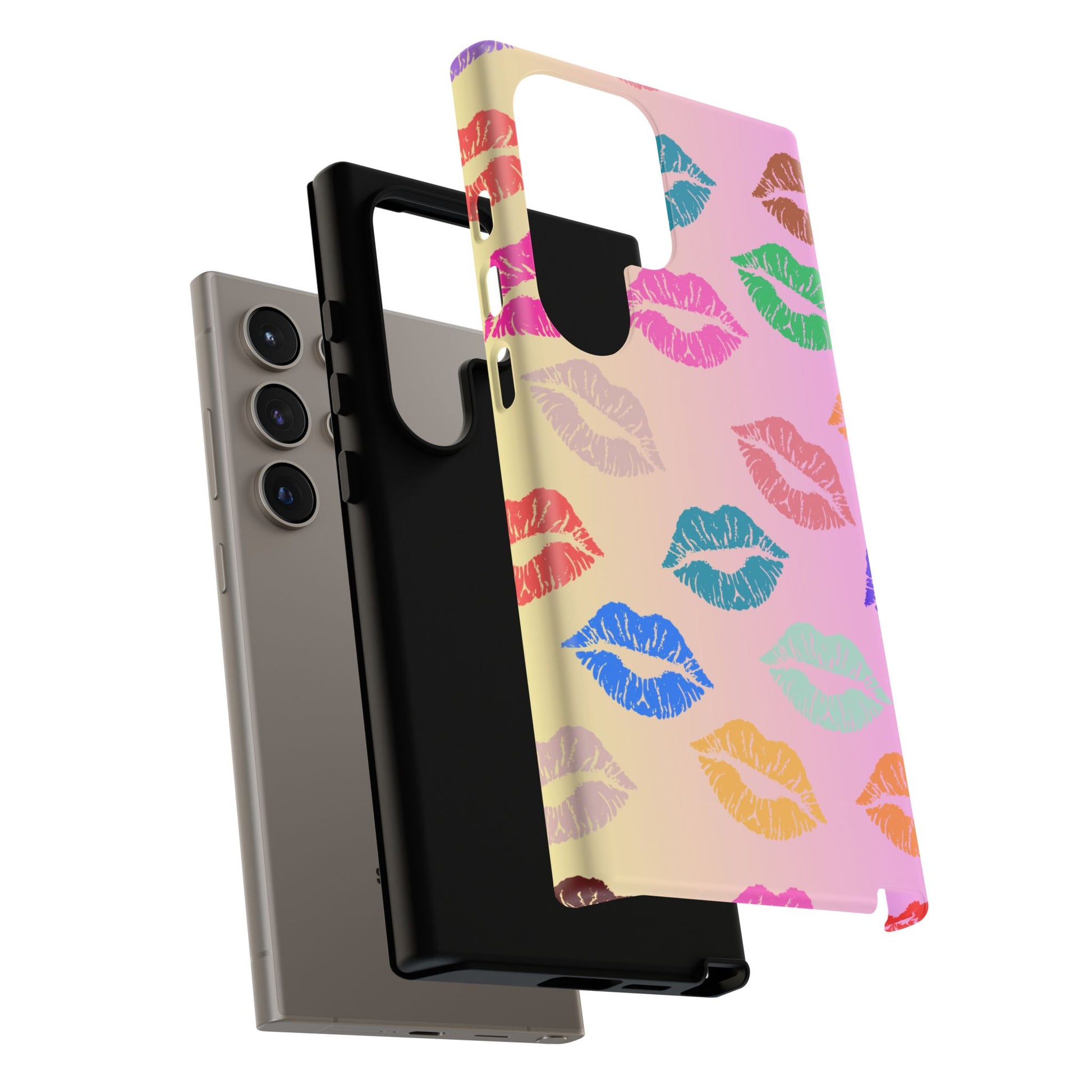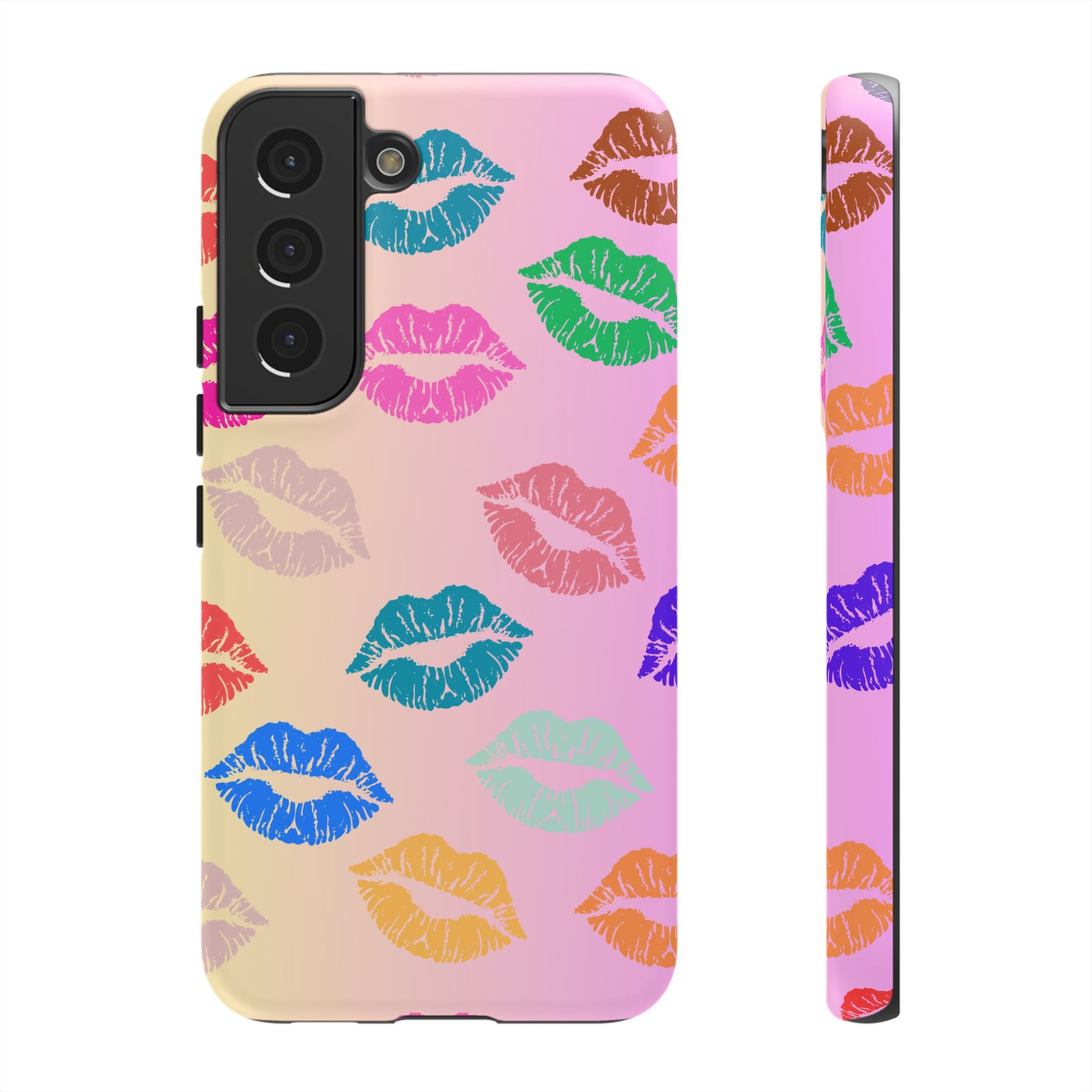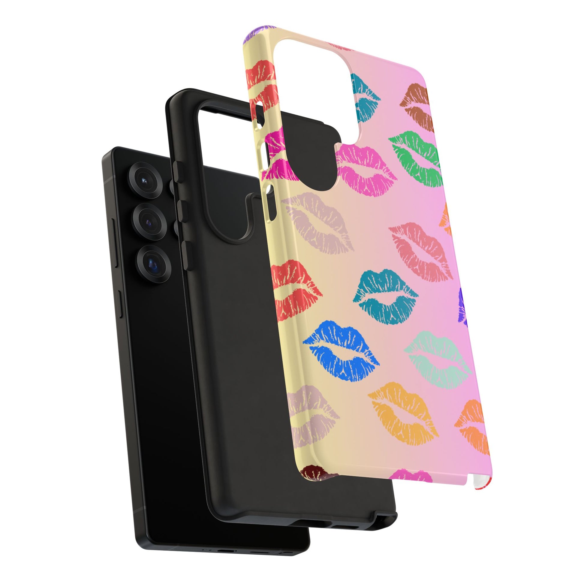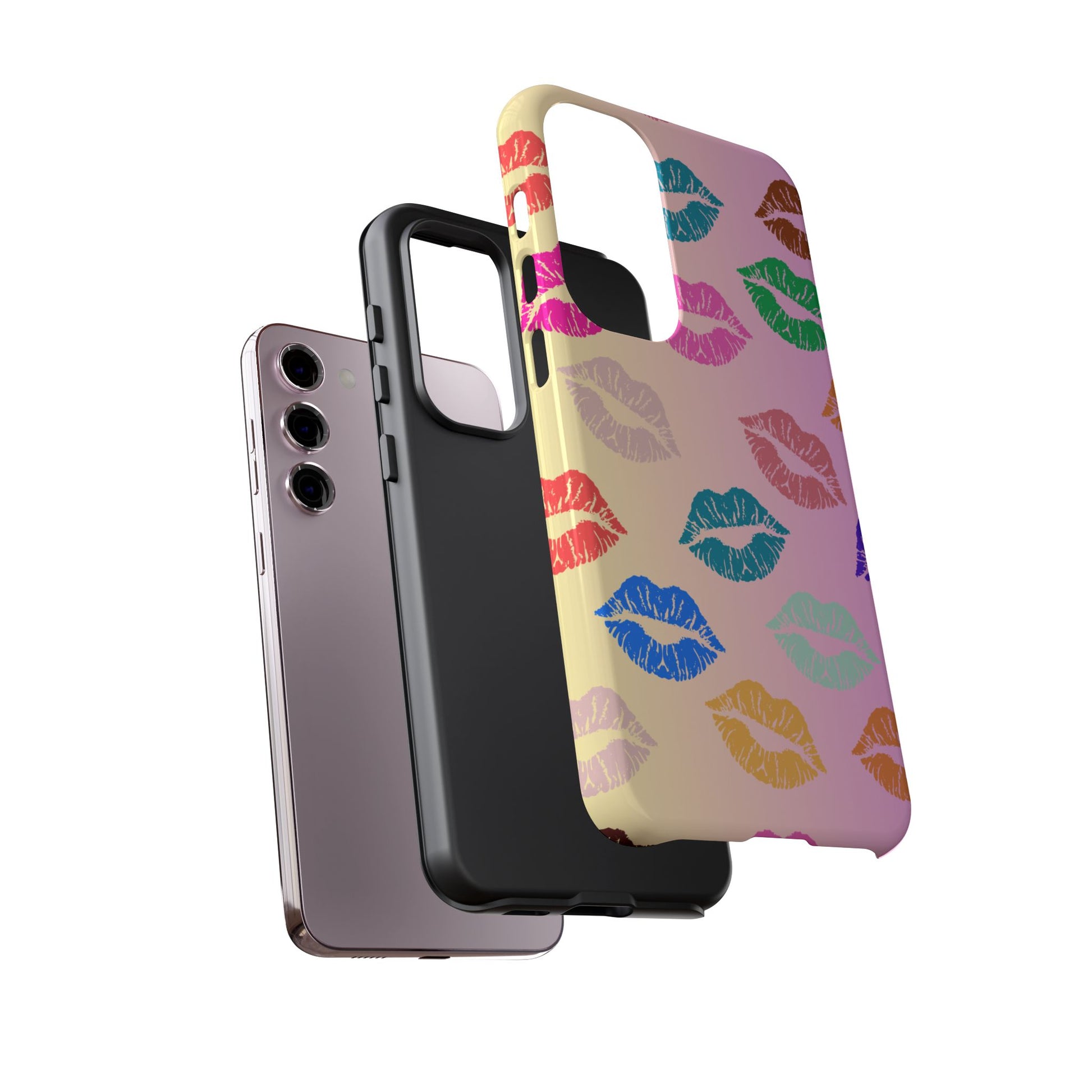 Introducing this eye-catching Tough Case, adorned with vibrant and playful kiss prints in a variety of colors. Perfectly crafted to encapsulate your phone with style and flair, this case brings a fun and cheerful vibe to your everyday life. Whether you're at a party, out with friends, or simply want to spice up your daily routine, this Tough Case is a delightful accessory that speaks to your personality. Ideal for adults who love to express their unique style, it's also a fantastic gift idea for celebrations like birthdays, anniversaries, or Valentine's Day. This case combines protection with personality, ensuring your phone remains safe while standing out in a crowd.