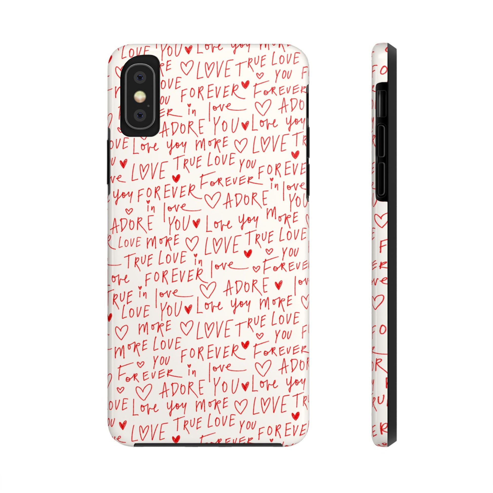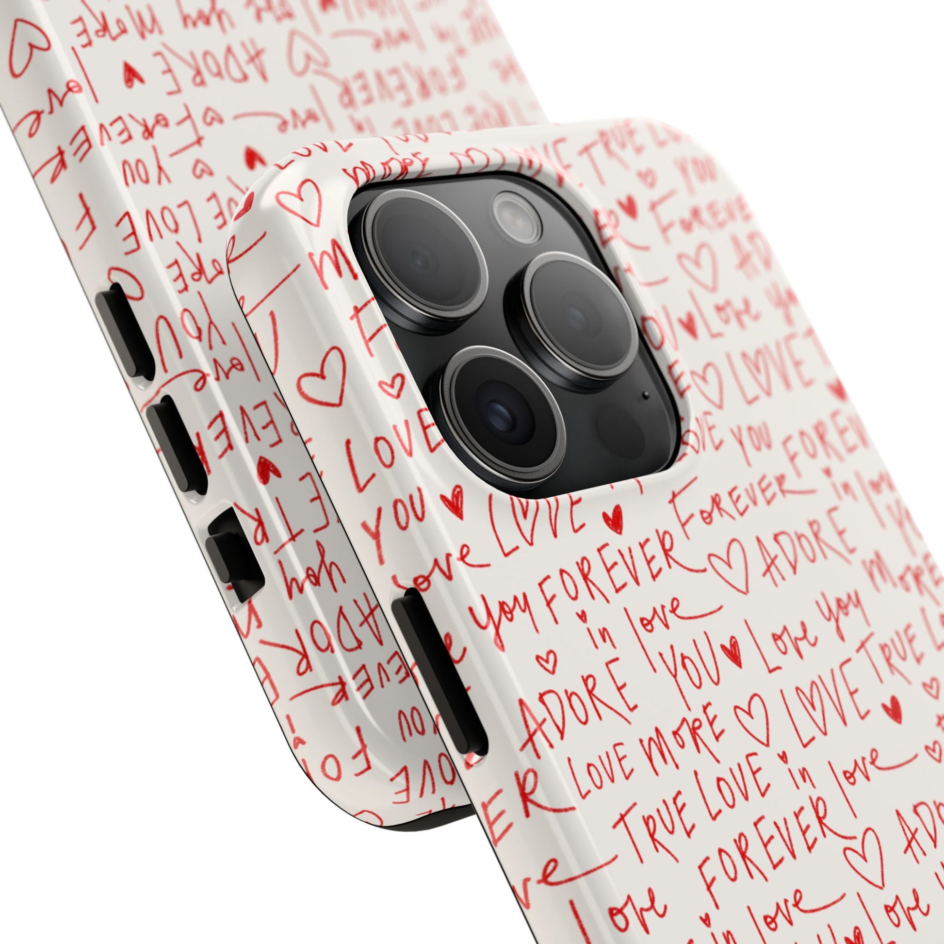 Introducing the perfect blend of protection and style with our Tough Phone Cases. This vibrant and unique phone case features a cheerful, romantic design filled with hearts and love declarations, making it an ideal accessory for those who cherish love and positivity. Whether you’re getting ready for Valentine’s Day, celebrating an anniversary, or simply want to express your affection daily, this case speaks to lovers, romantic souls, and anyone wanting to add a touch of whimsy to their phone. It seamlessly fits into a lifestyle that values both aesthetics and practicality—keeping your phone safe while showcasing your personality. Bring a sense of joy and passion to your everyday routine with this standout piece that resonates with love enthusiasts and stylish individuals alike!