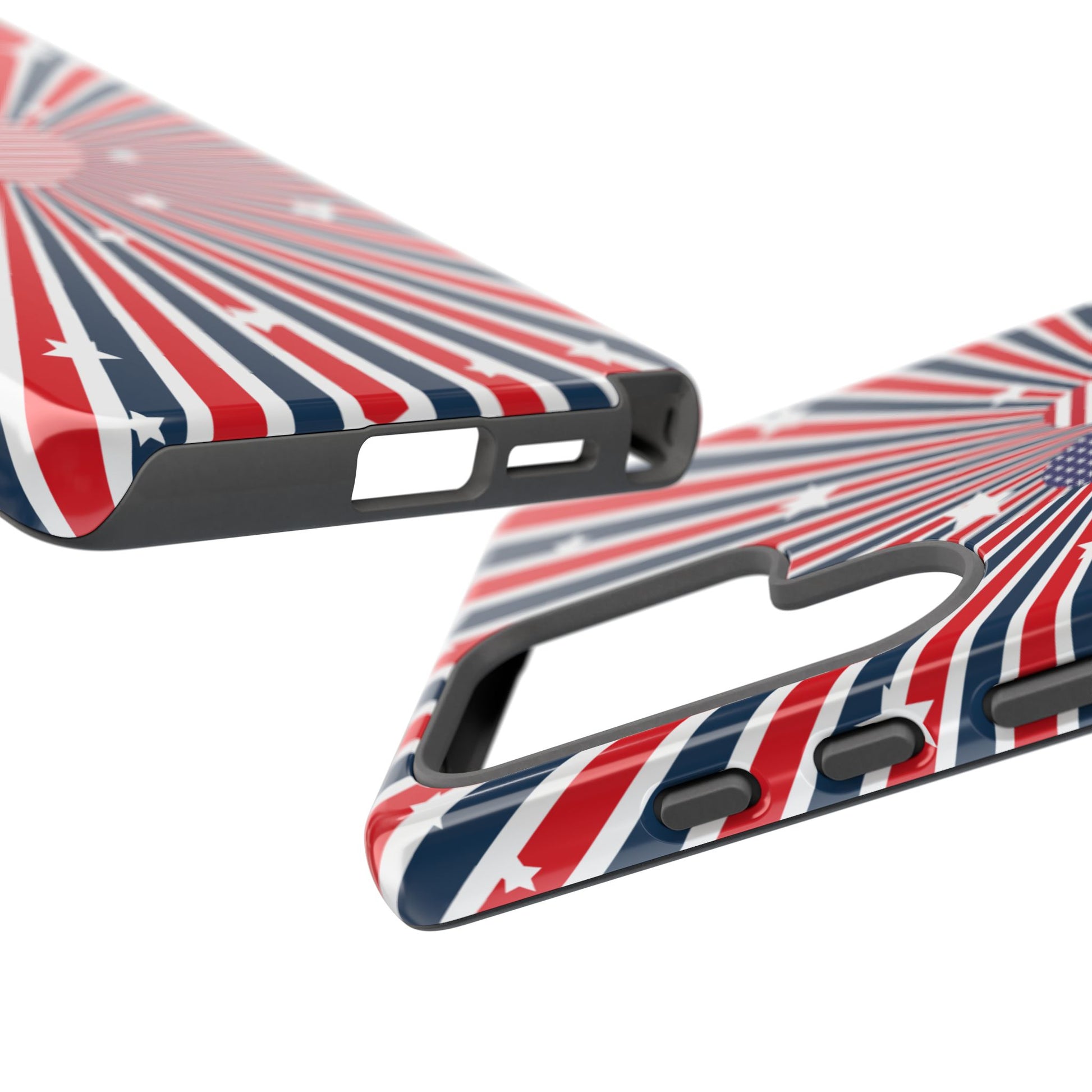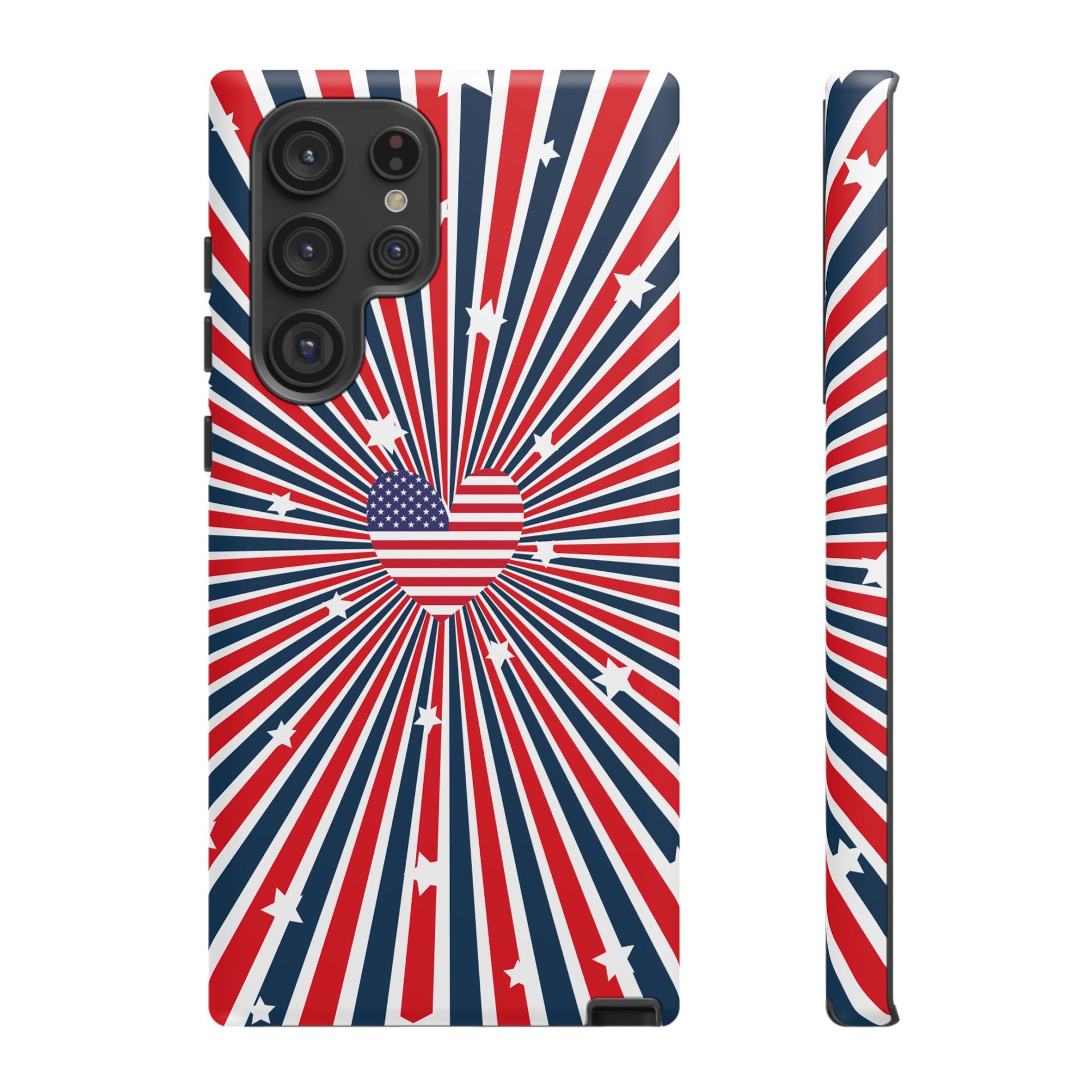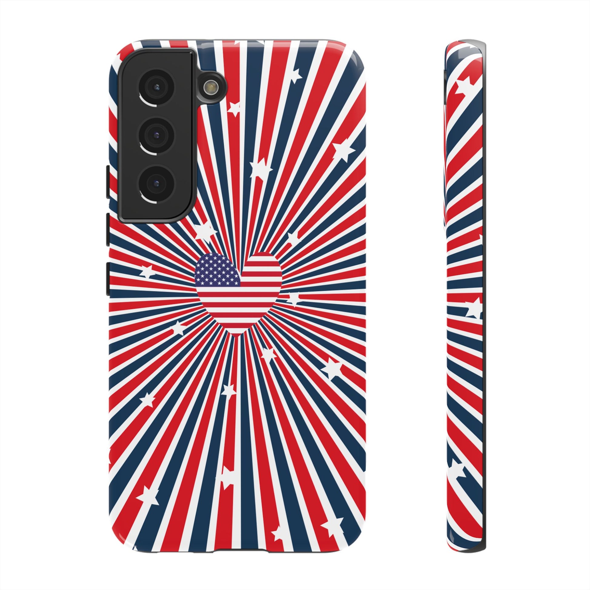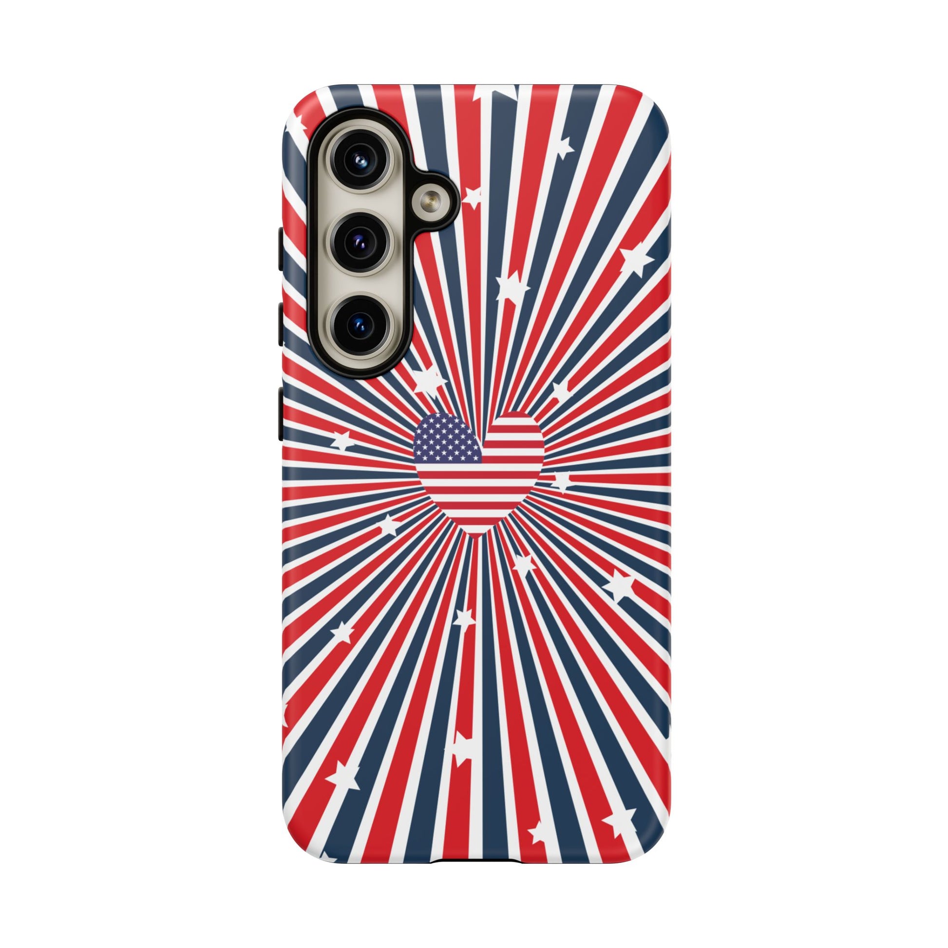 Patriotic Tough Phone Case perfect for 4th of July, Memorial Day, and Independence Day celebrations. Made with Lexan plastic and a flexible rubber liner for ultimate protection. Features a glossy finish and UV protection for long-lasting durability. Ideal for those who want to show their American pride while keeping their phone safe.