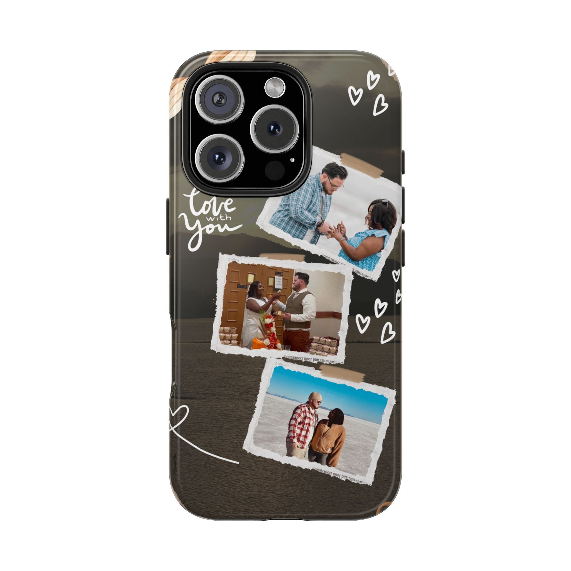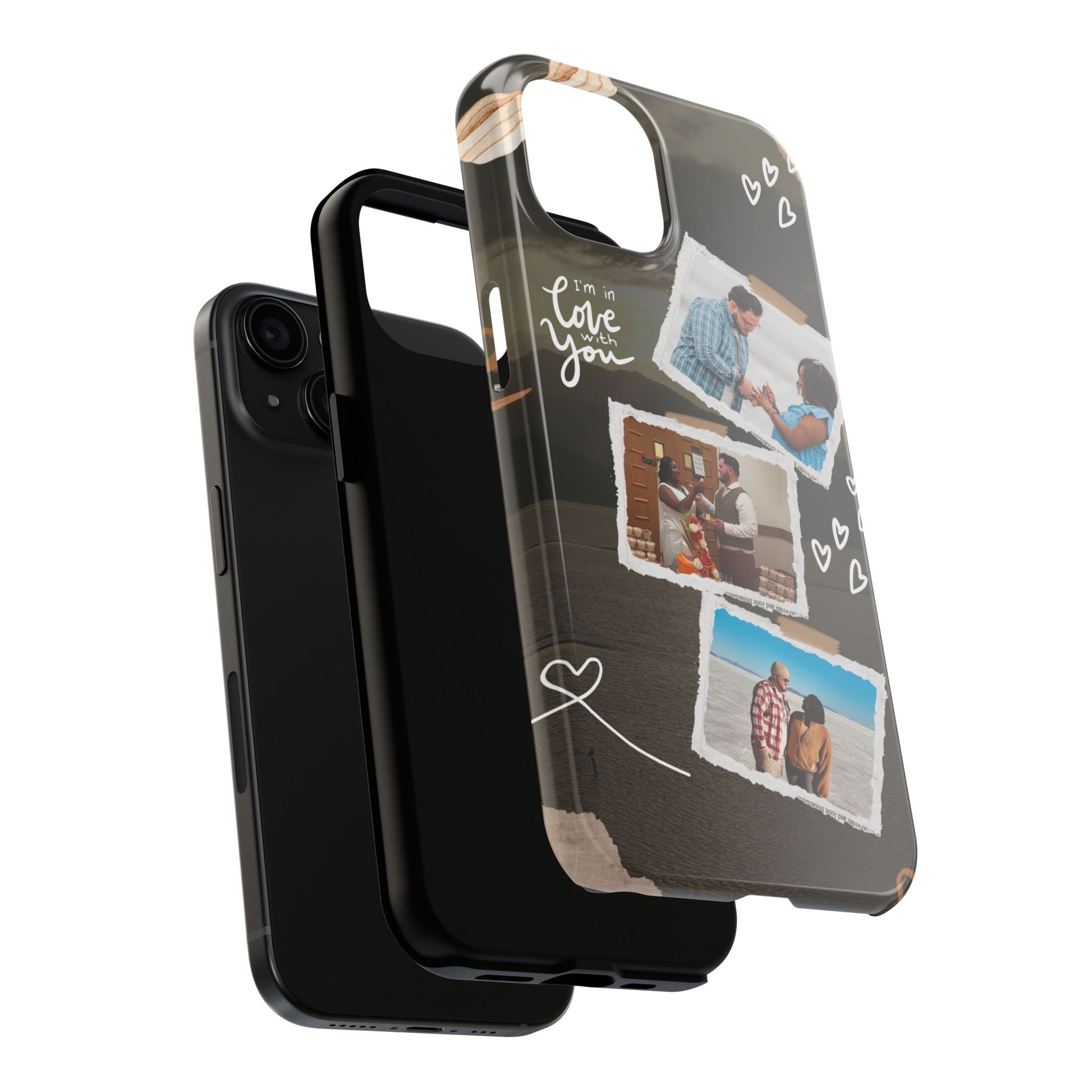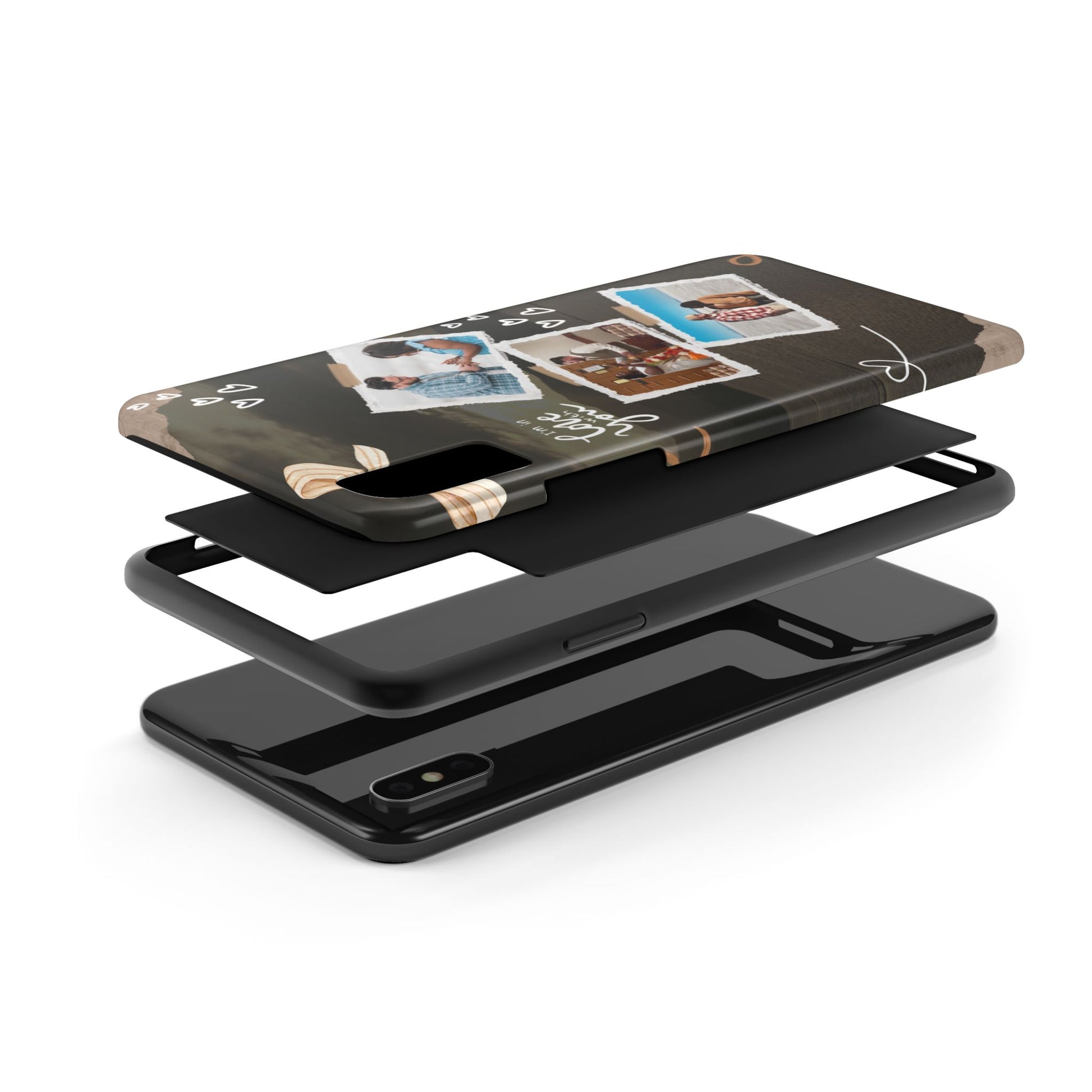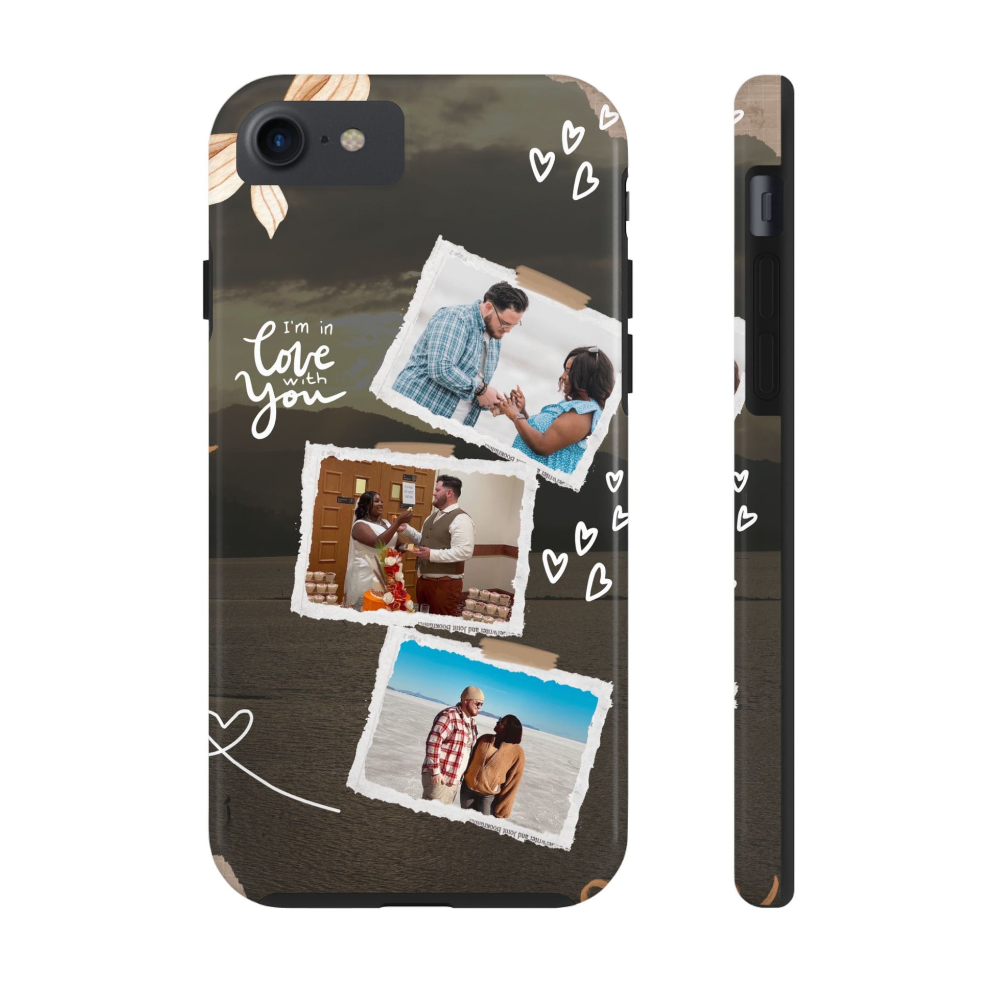 Add 3 Photos to customize this Tough Phone Case; it is perfect for showcasing your love for someone special. It is made with durable and impact-resistant Lexan plastic, with a lay-flat bezel to protect the screen. The personalized design adds a special touch to your phone, making it a great gift for anniversaries, birthdays, or Valentine's Day. It is suitable for those looking for a unique and sentimental phone case. UPLOAD/EMAIL YOUR PICTURES TO Yonithajmahal@gmail.com. Landscape photos work best, but including portrait pictures will slightly change the layout on the case. Product features - Strong and durable Lexan plastic construction - Lay-flat bezel to protect the screen - Flexible rubber liner for shock absorption - Glossy finish for a stylish look - Ideal for personalized gifts and special occasions