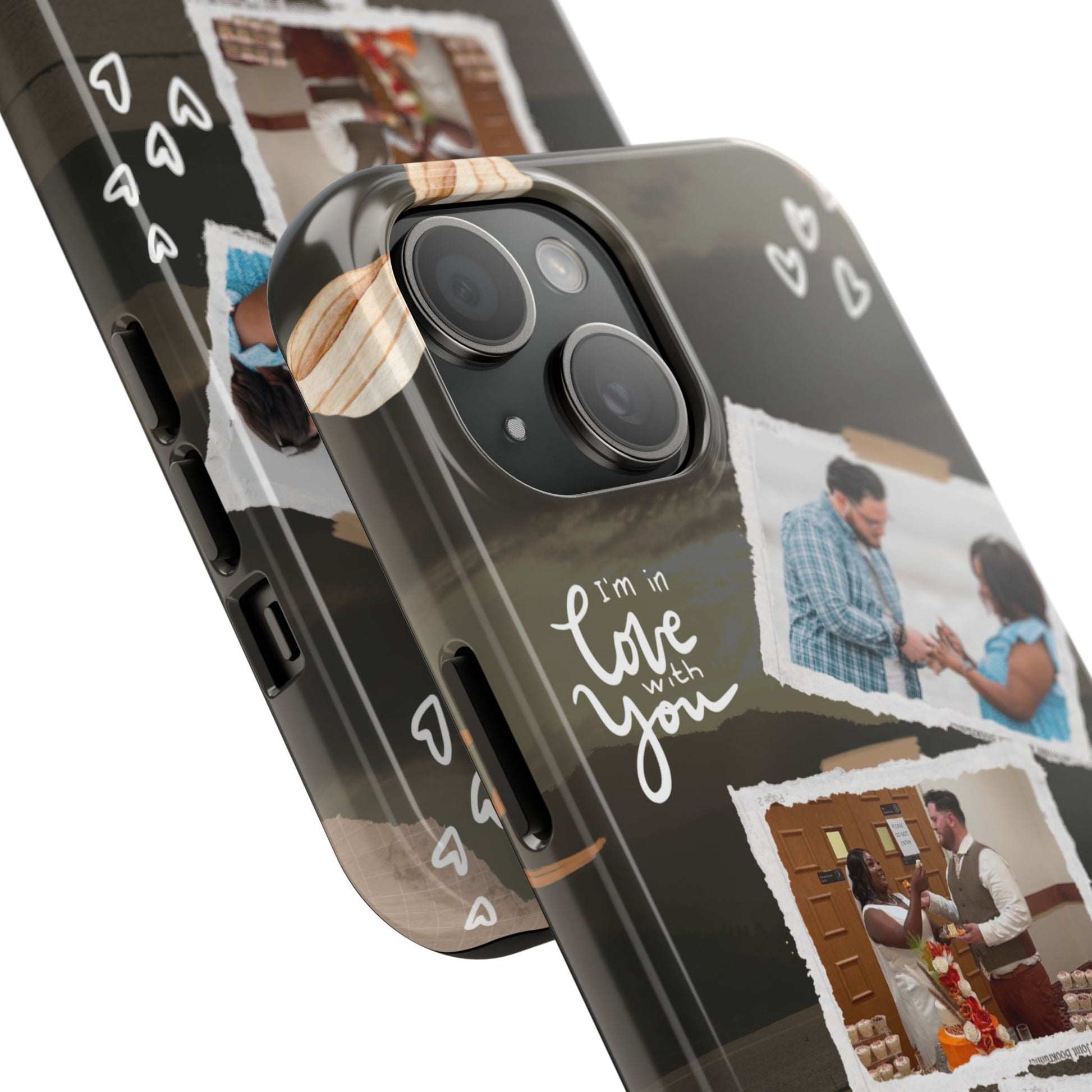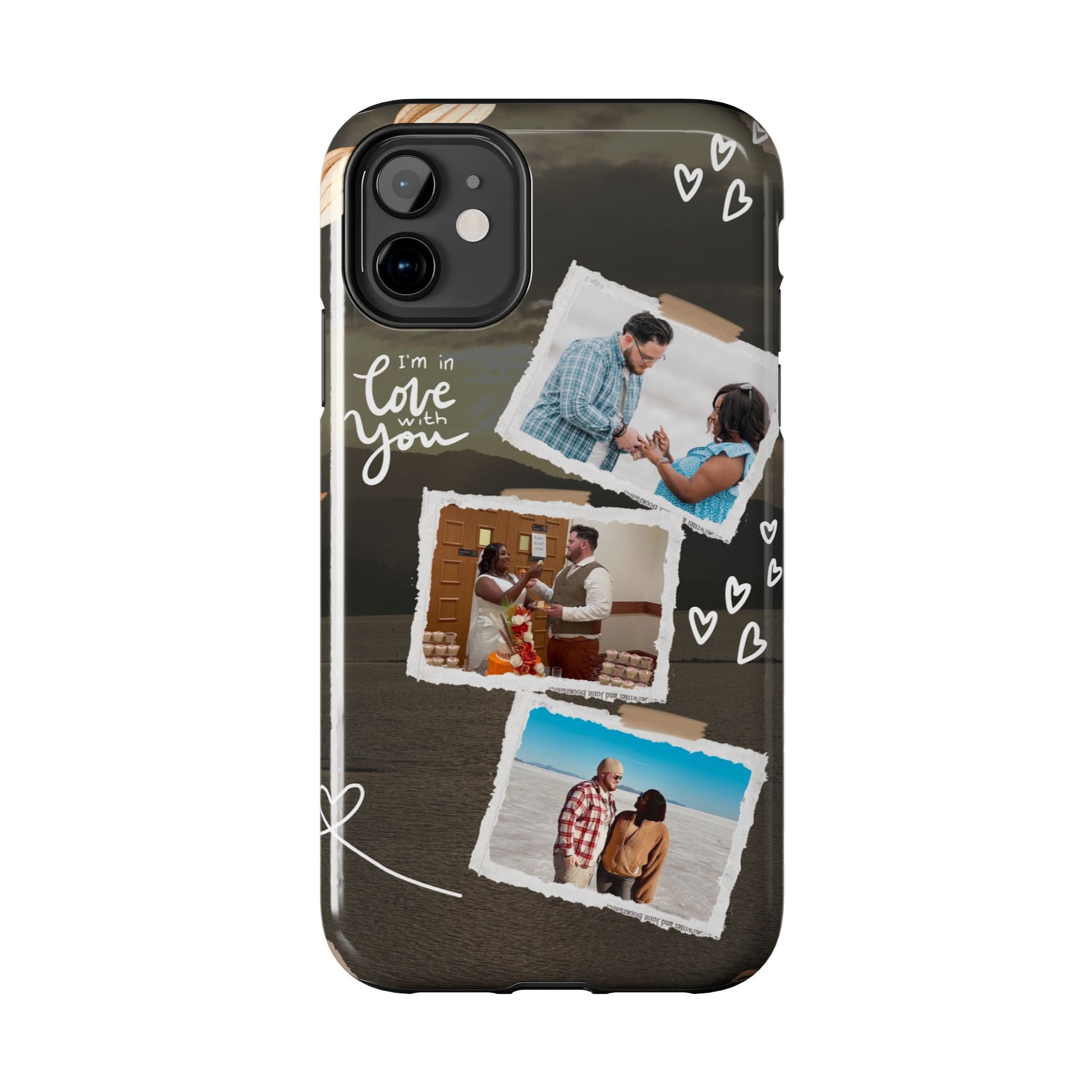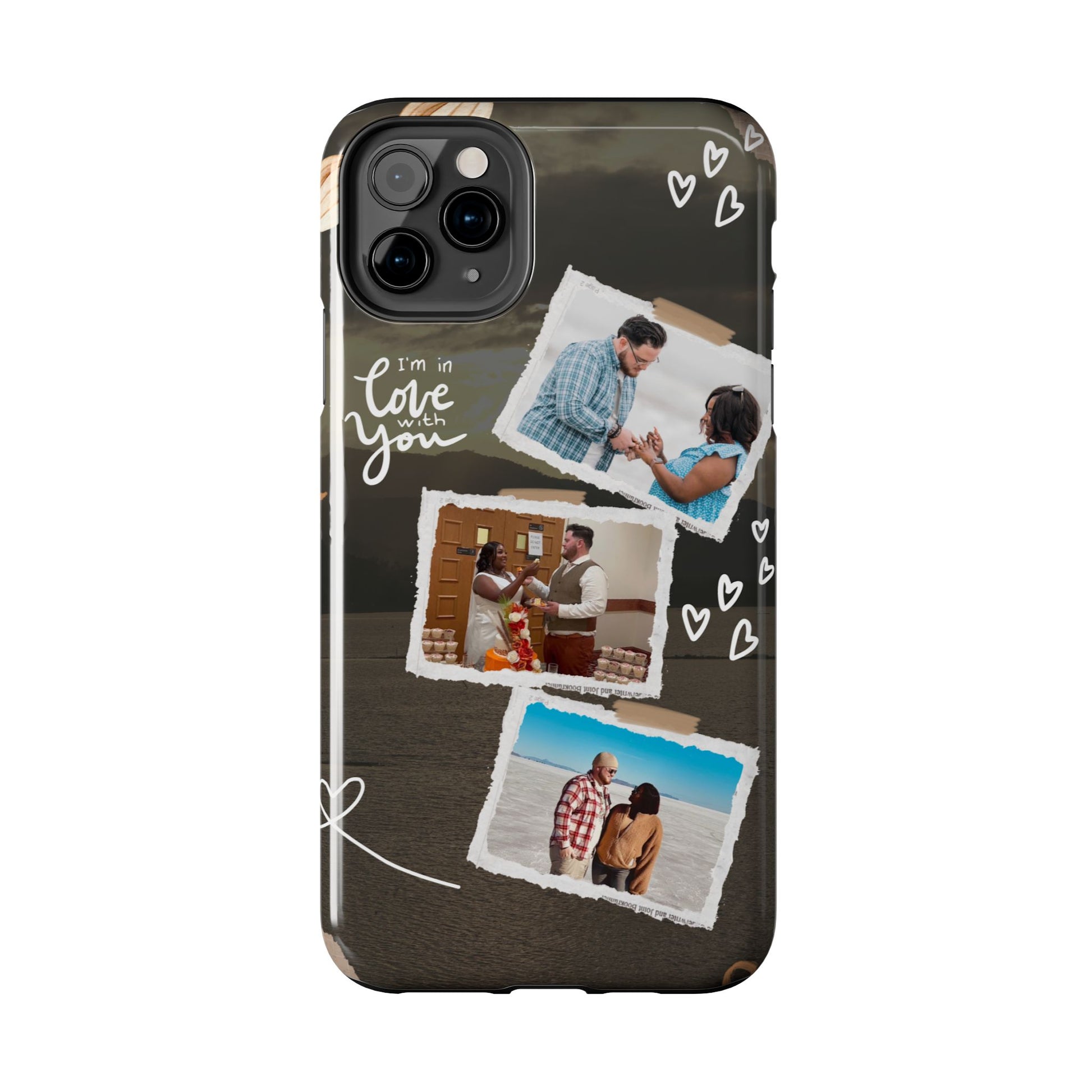Add 3 Photos to customize this Tough Phone Case; it is perfect for showcasing your love for someone special. It is made with durable and impact-resistant Lexan plastic, with a lay-flat bezel to protect the screen. The personalized design adds a special touch to your phone, making it a great gift for anniversaries, birthdays, or Valentine's Day. It is suitable for those looking for a unique and sentimental phone case. UPLOAD/EMAIL YOUR PICTURES TO Yonithajmahal@gmail.com. Landscape photos work best, but including portrait pictures will slightly change the layout on the case. Product features - Strong and durable Lexan plastic construction - Lay-flat bezel to protect the screen - Flexible rubber liner for shock absorption - Glossy finish for a stylish look - Ideal for personalized gifts and special occasions