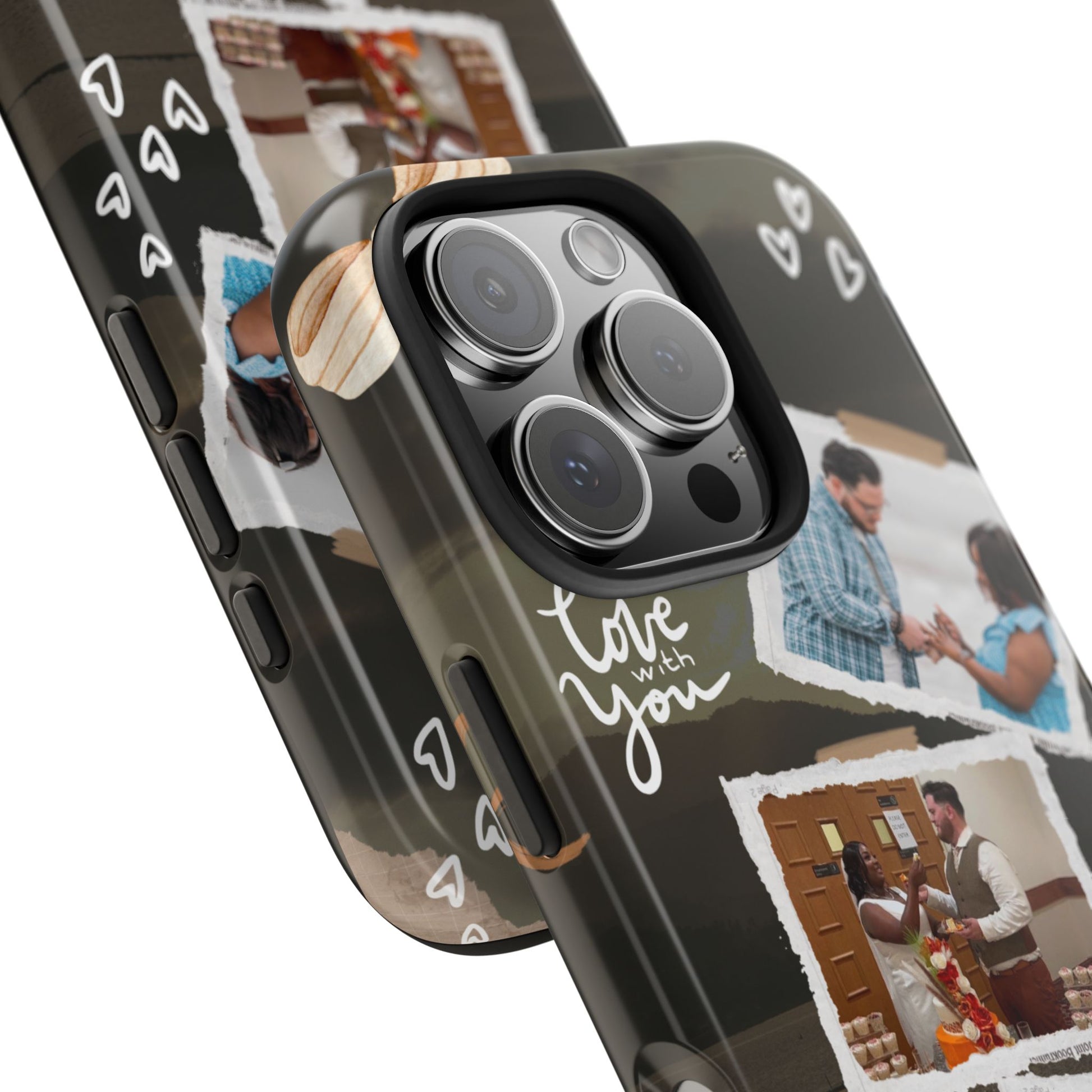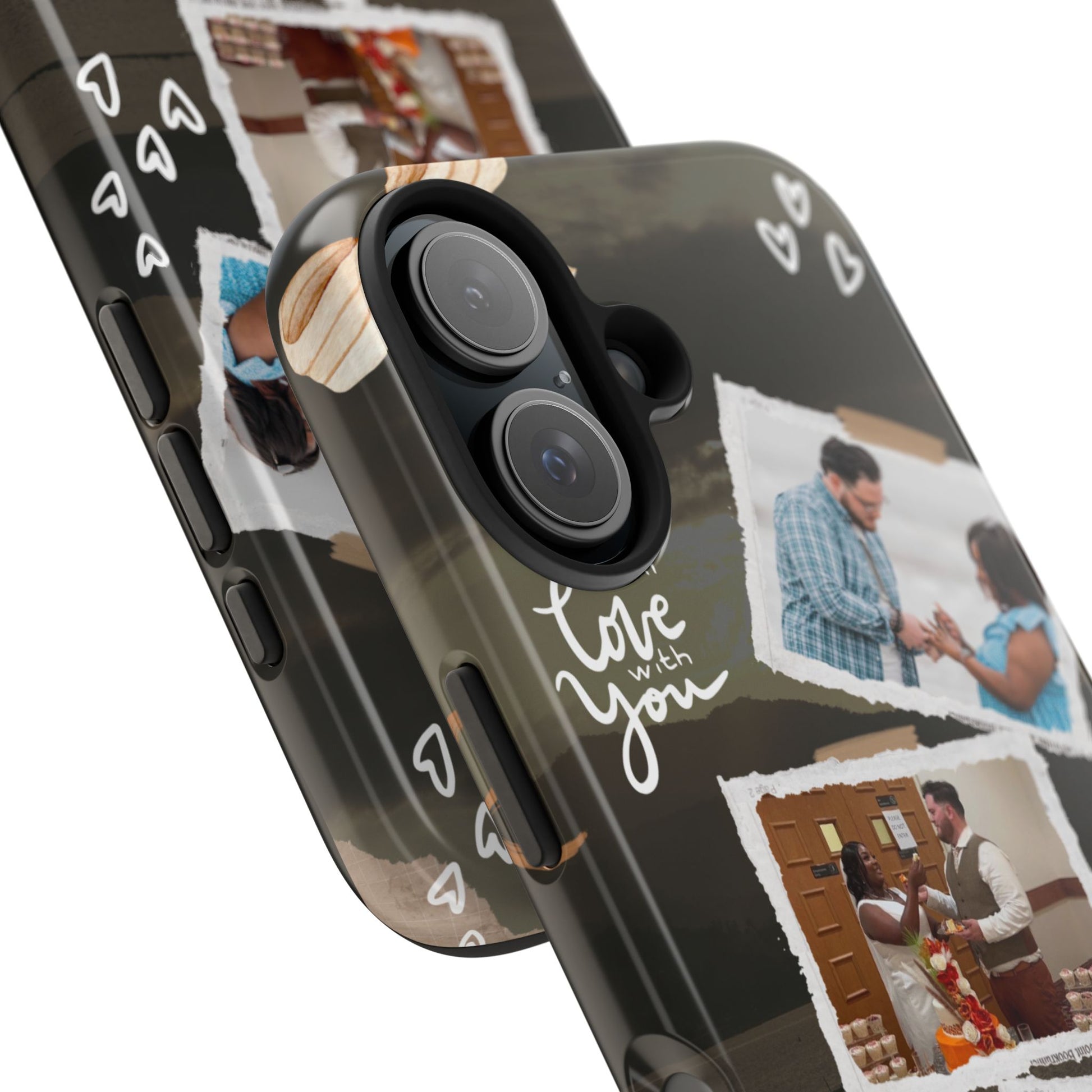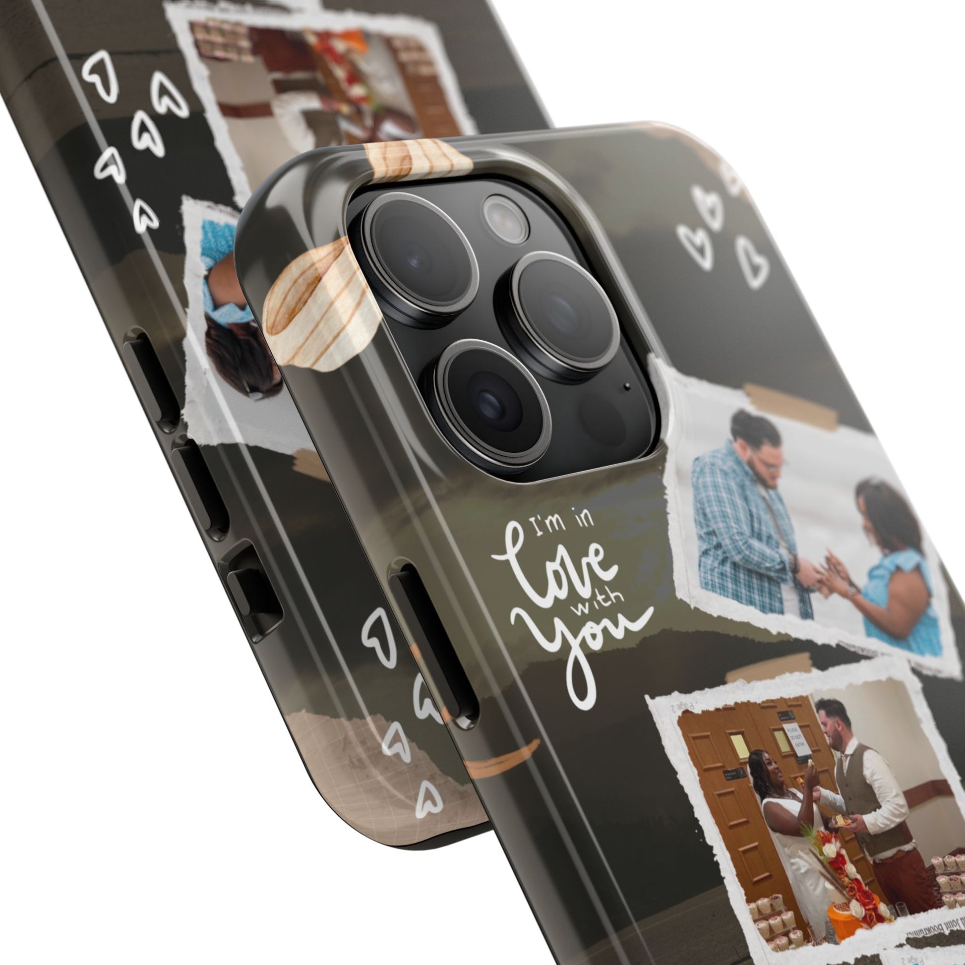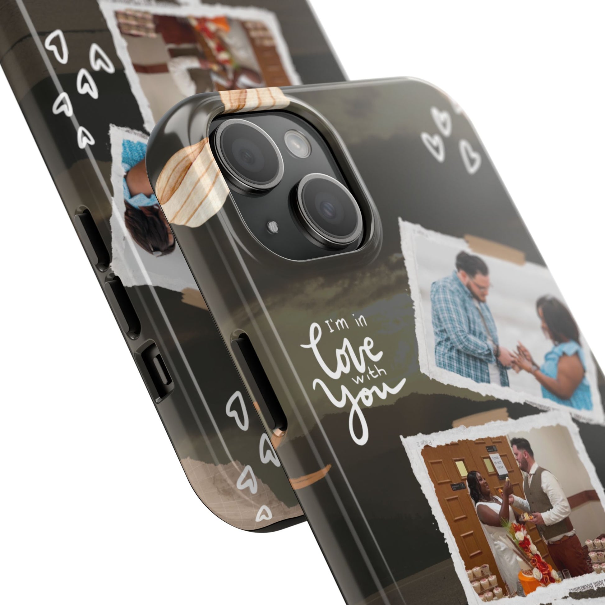 Add 3 Photos to customize this Tough Phone Case; it is perfect for showcasing your love for someone special. It is made with durable and impact-resistant Lexan plastic, with a lay-flat bezel to protect the screen. The personalized design adds a special touch to your phone, making it a great gift for anniversaries, birthdays, or Valentine's Day. It is suitable for those looking for a unique and sentimental phone case. UPLOAD/EMAIL YOUR PICTURES TO Yonithajmahal@gmail.com. Landscape photos work best, but including portrait pictures will slightly change the layout on the case. Product features - Strong and durable Lexan plastic construction - Lay-flat bezel to protect the screen - Flexible rubber liner for shock absorption - Glossy finish for a stylish look - Ideal for personalized gifts and special occasions