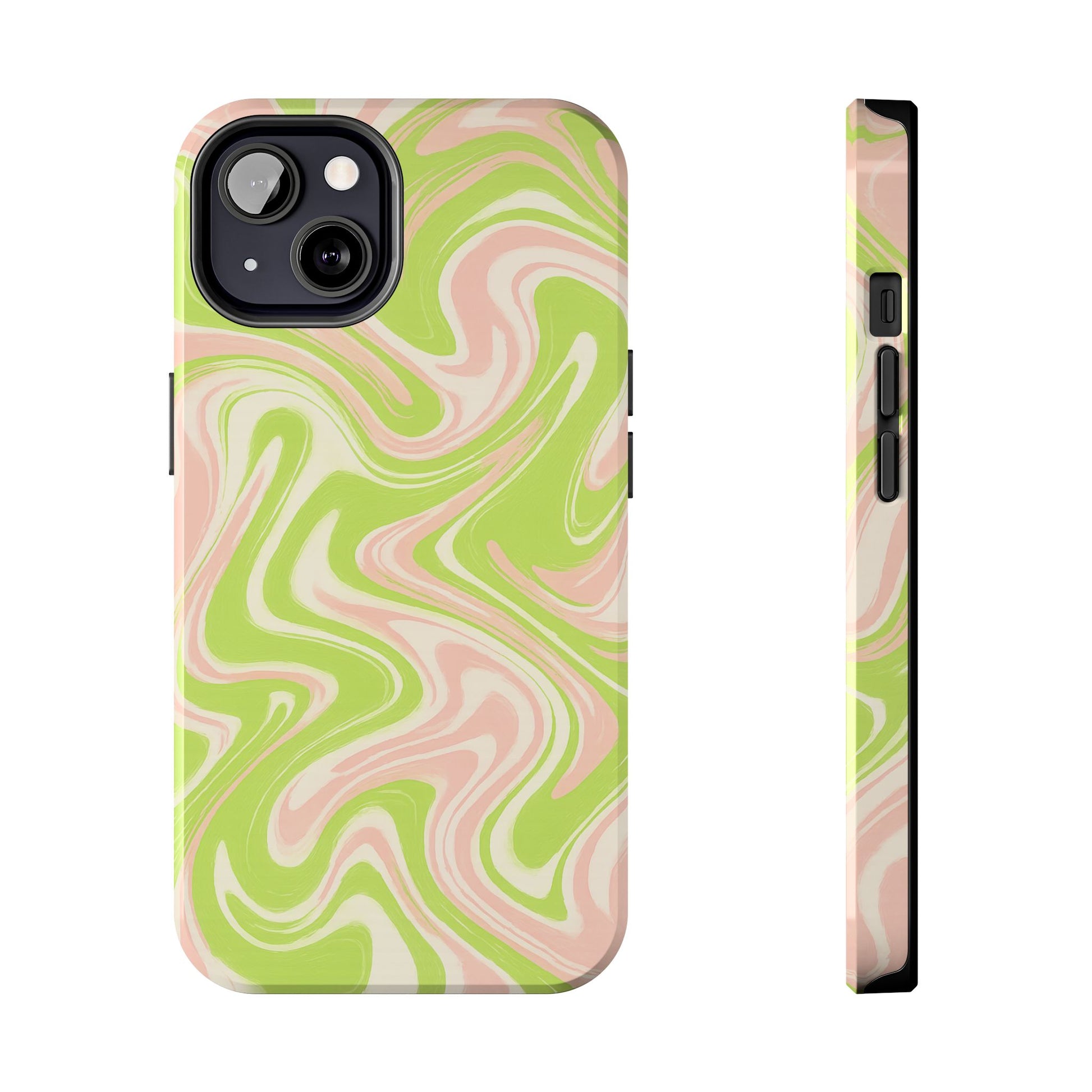 Pink & Green Stylish Tough Phone Case, Durable Protection, Gift for Friends, Colorful Marble Design