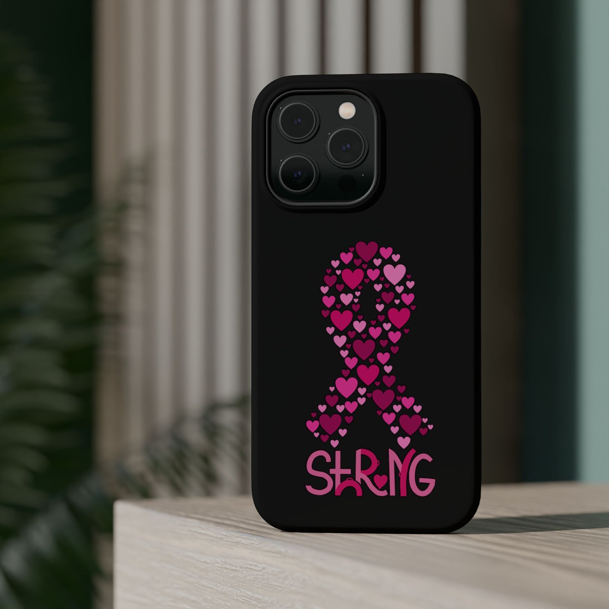 Pink Ribbon Magnetic Phone Case - Strong Heart Design, Cancer Awareness, Gift for Supporters for IPhone