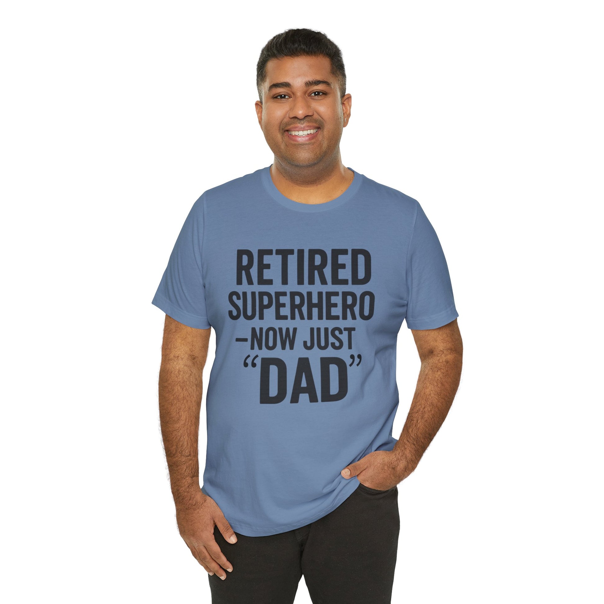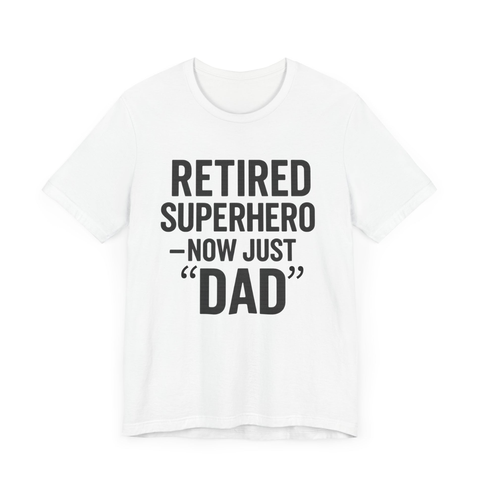 Introducing the perfect blend of comfort and style with our Unisex Jersey Short Sleeve Tee! This lightweight tee delivers an effortlessly casual vibe, making it a staple for everyday wear. Perfect for relaxing weekends or semi-formal gatherings, it enhances your wardrobe effortlessly. Ideal for dads, grandfathers, or any retired superhero in your life, this shirt makes a thoughtful gift for Father's Day, birthdays, or any occasion that celebrates fatherhood. The classic design allows for easy layering, making it versatile for any season or holiday. Embrace comfort while showcasing a fun, heartfelt message that resonates with those who prioritize family and humor.