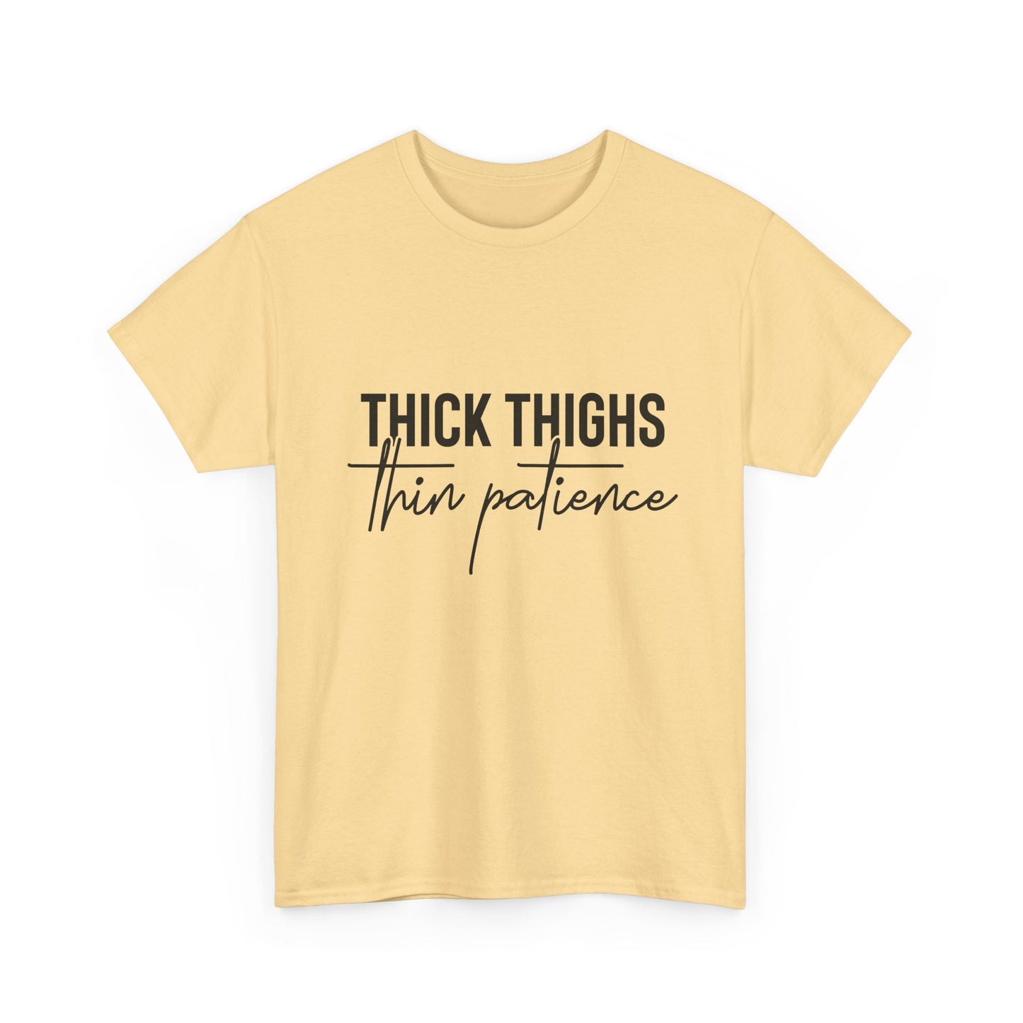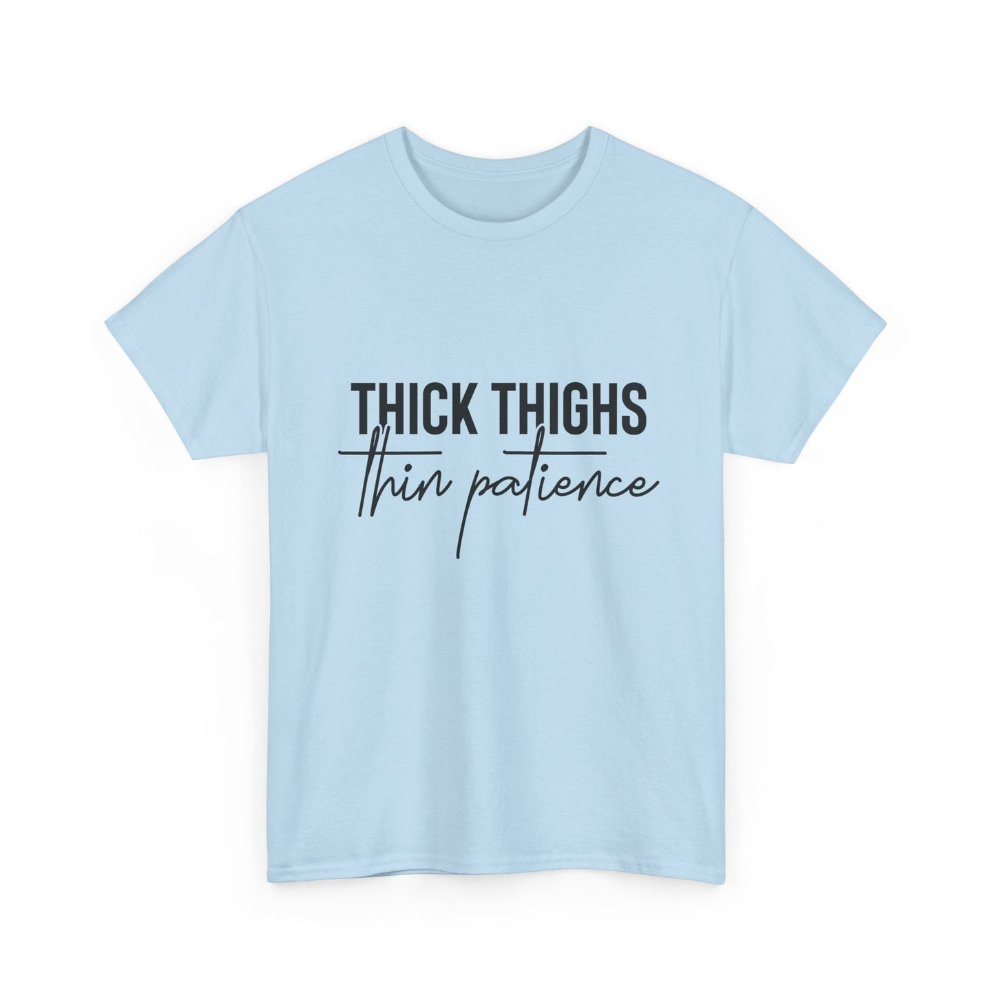Thick Thighs, Thin Patience Unisex Cotton Tee is a comfortable and durable shirt perfect for daily wear. The classic fit and crew neckline make it suitable for various occasions, from casual to semi-formal. This tee is relevant to adults looking for a fun and relatable design to express their personality. Ideal for gift-giving during birthdays, holidays, or any special occasion.
