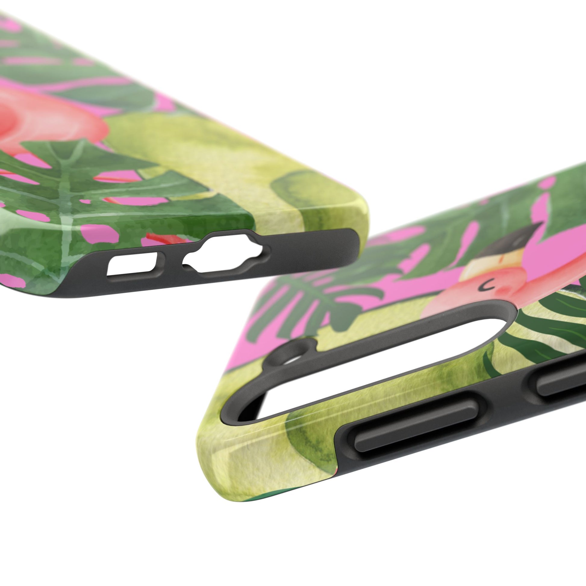 Introducing the perfect blend of style and protection with our durable phone cases. Vibrant and lively, these cases feature a delightful flamingo design surrounded by lush greenery, adding a dash of personality to your daily routine. Ideal for those who appreciate both functionality and flair, our cases elevate any phone while offering robust protection. Whether you're commuting, hiking, or lounging at home, this case is perfect for enhancing your everyday adventures. Great for gifting on occasions like birthdays, holidays, or simply to brighten someone's day, this product appeals to nature lovers, beach enthusiasts, and anyone who enjoys a pop of color in their accessories.