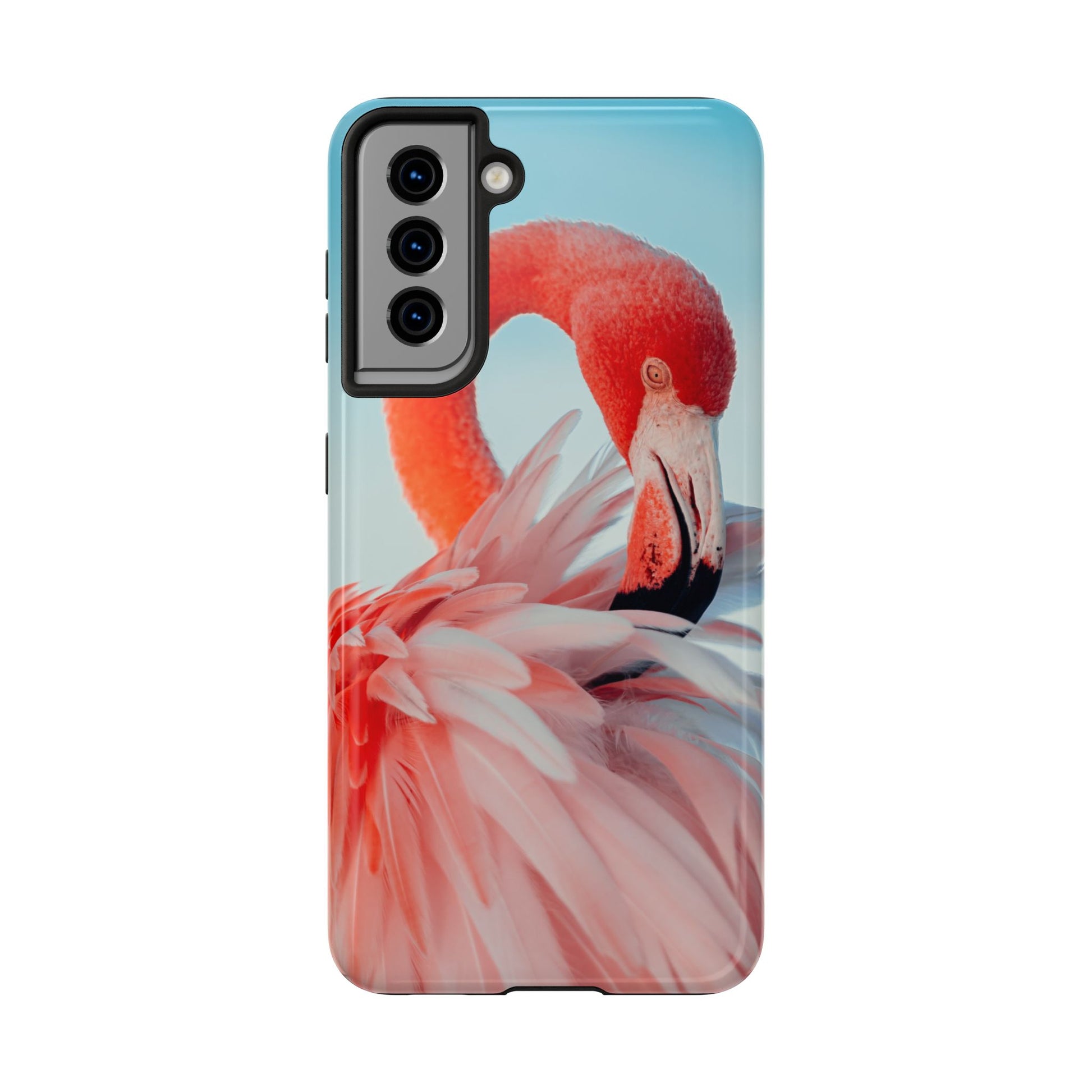 Protect your phone in style with this stunning Tough Phone Case. Adorned with a vibrant flamingo design, it brings an artistic flair that is sure to stand out in any setting. This case not only keeps your device safe from everyday wear and tear, but also adds a pop of color and personality to your daily life. Perfect for tropical vacation lovers, bird enthusiasts, or anyone wanting to showcase their unique style. This product is an excellent gift idea for birthdays, holidays, or any special occasion. Elevate your phone's aesthetics while ensuring maximum protection with this fashionable accessory!